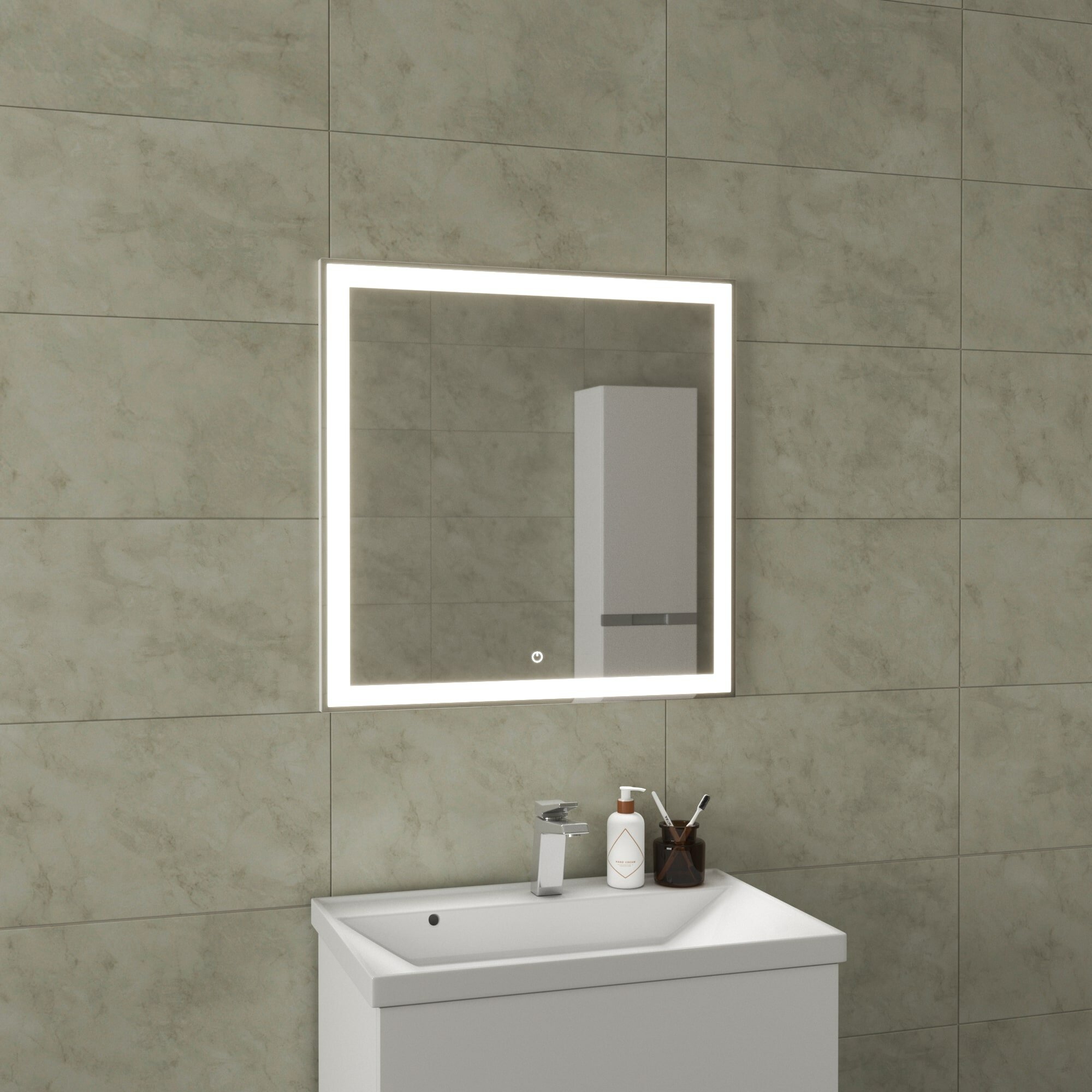 Светодиодное зеркало Allia 700х700 изготовлено из зеркального полотна толщиной 4 мм. В качестве элемента LED-подсветки используется светодиодная лента с плотностью диодов 120 шт./м мощностью 9,6Вт/м. Электрические компоненты размещены внутри корпусаиз высококачественного УПС-пластика. Край полотна обработан еврокромкой. Управление подсветкой осуществляется при помощи сенсорной кнопки, вынесенной на лицевую панель. Зеркало поставляется в комплекте с настенным крепежом.