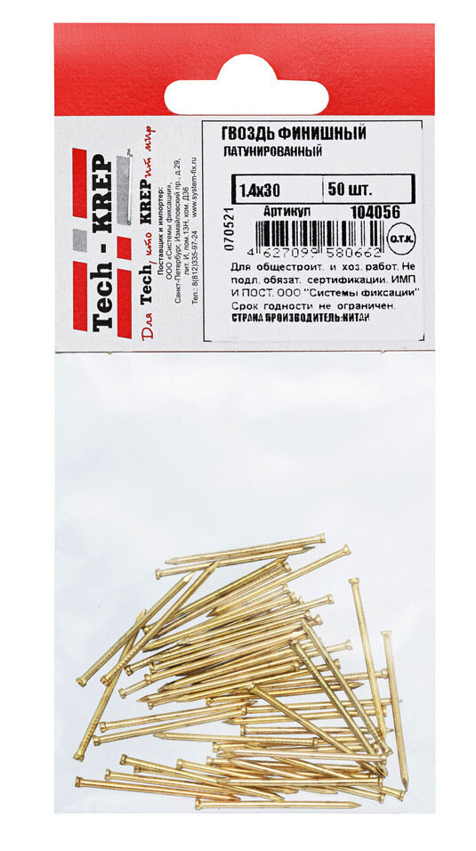 гвоздь финишный латунированный 14х30 (50 шт) Tech-Krep
