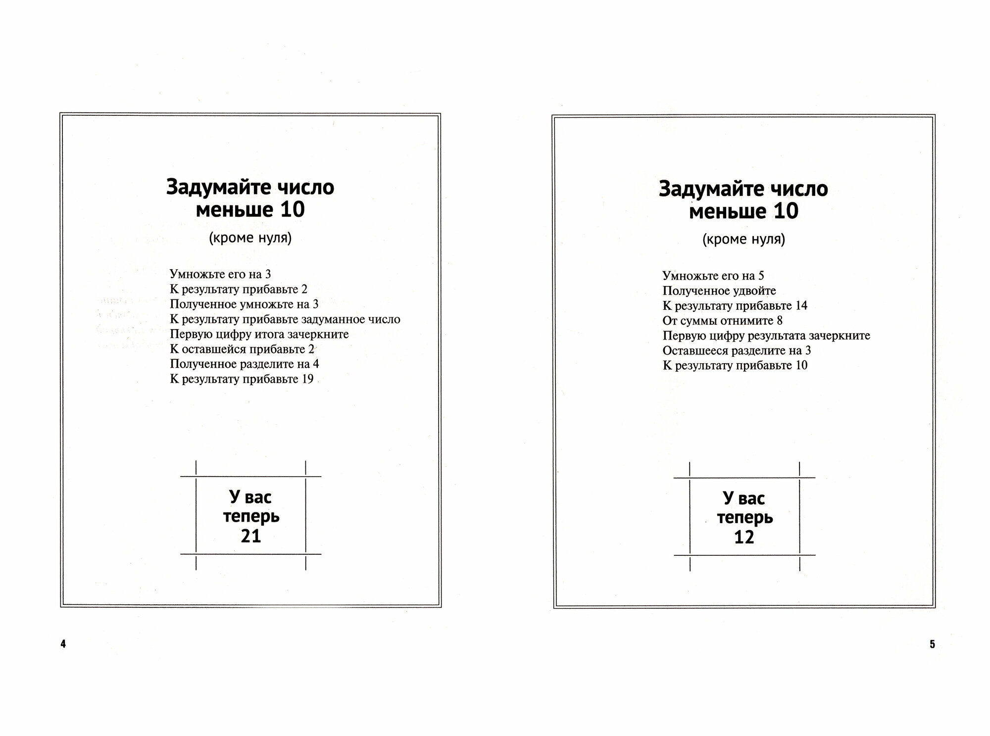 Эта книга знаменитого писателя и популяризатора науки Якова Исидоровича Перельмана "Задумай число" - не просто книга из множества тех, что стоят на полках в книжных магазинах: она ВОЛШЕБНАЯ! Да, да! Но если не верите, проделайте внимательно над задуманным числом все выкладки, о которых здесь говорится, - и книжечка отгадает результат ваших вычислений. Если результат иной, проверьте свои выкладки и удостоверьтесь, что ошиблись вы, а не книжечка. А в заключение автор раскроет для вас секреты волшебства.