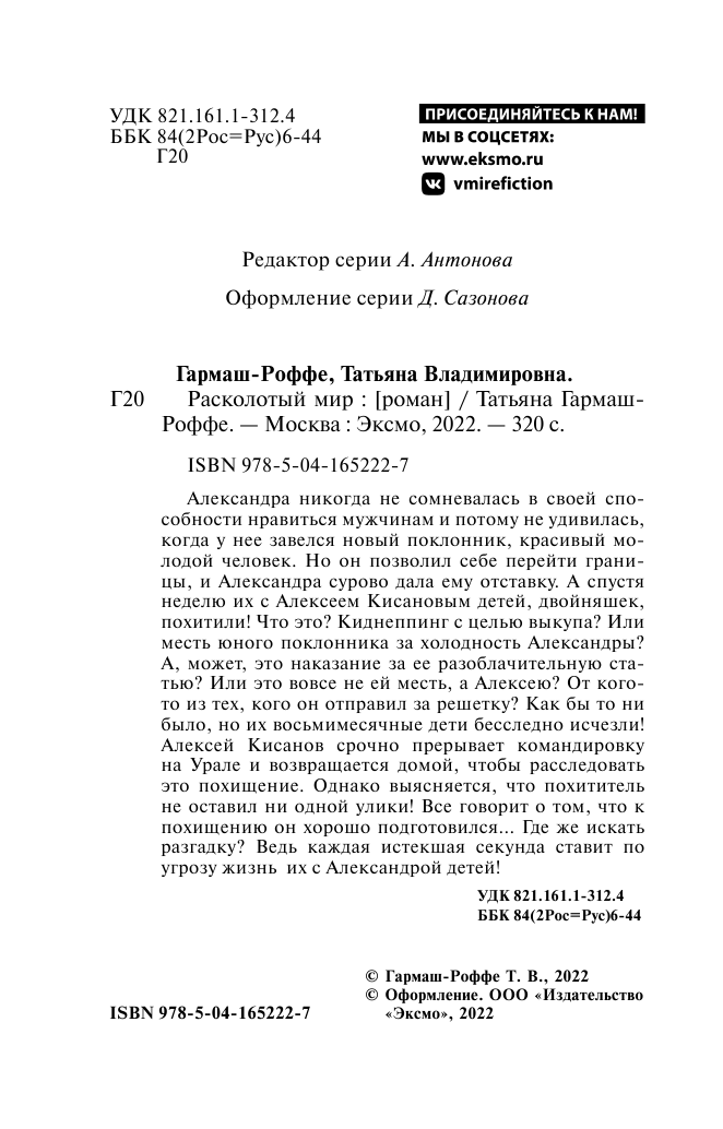 Книга: Расколотый мир (Гармаш-Роффе Татьяна Владимировна); ООО "Издательство "Эксмо", 2022