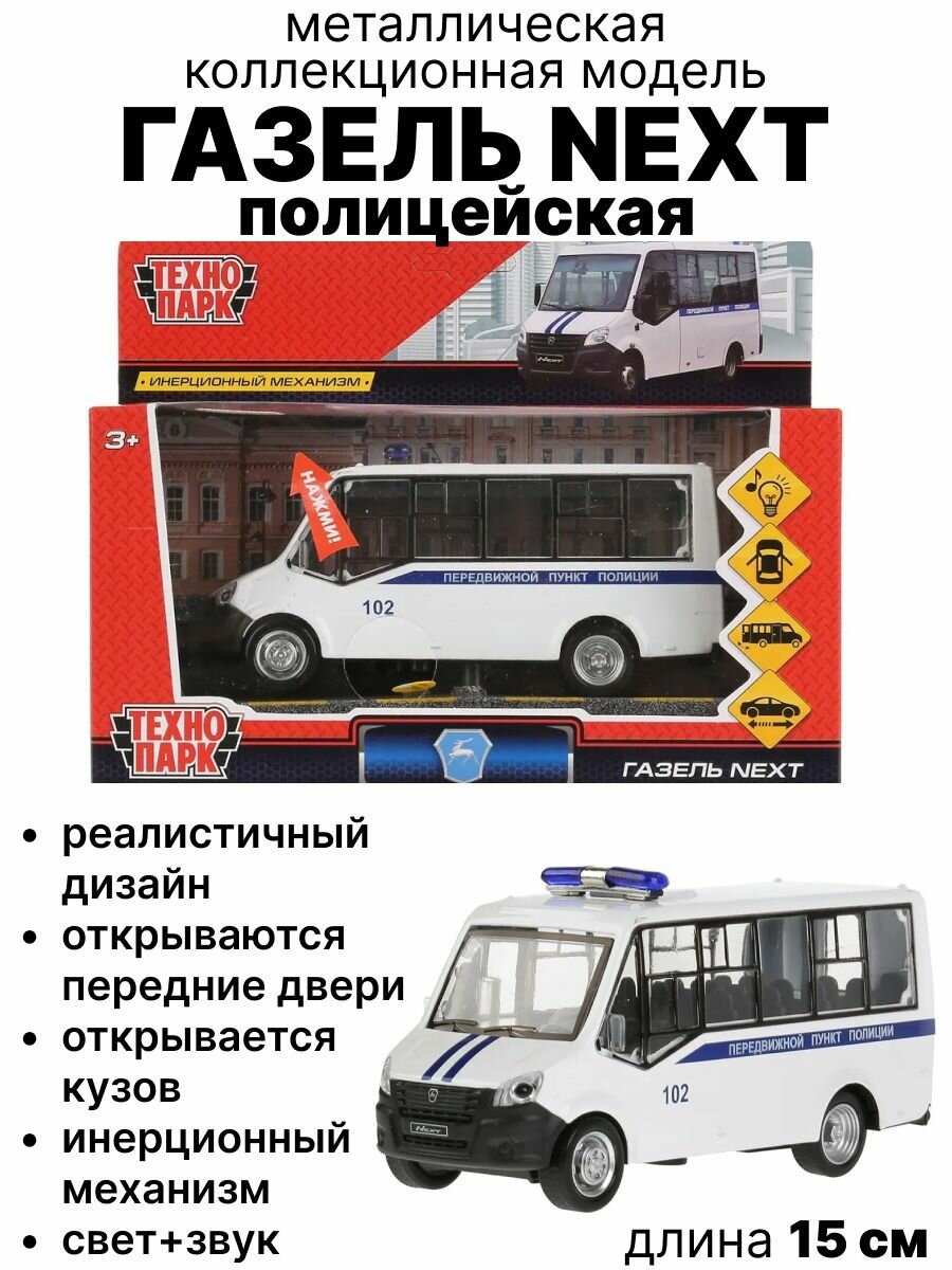 Машина Технопарк "Газель Next Citiline" Полиция 14 см арт.NEXTCITI-15SL-POL