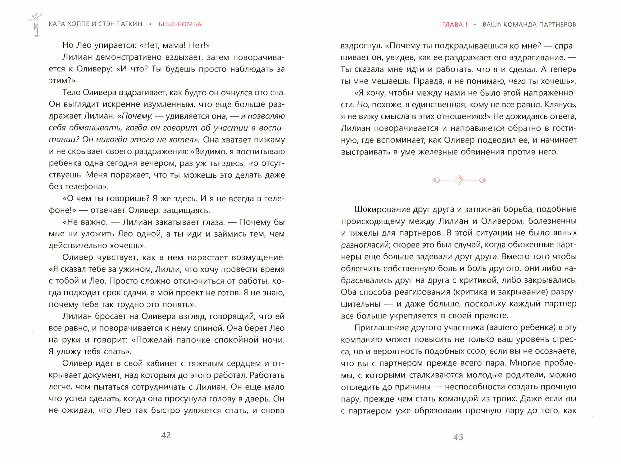 Появление ребенка - это счастье, которое полностью меняет жизнь. И какие бы курсы заранее не проходили будущие родители, они не будут на сто процентов готовы к бессонным ночам, постоянной нагрузке, моментам восторга и сменяющим их минутам отчаяния. Во время первых сложных месяцев нормально чувствовать себя растерявшимися, уставшими и основное внимание уделять младенцу. Важно, по мнению авторов, не забывать при этом, что здоровье и отношения пары не менее значимы, чем их ребенок. "Бэби-бомба" предлагает эффективные инструменты, которые помогут вашей семье стать сплоченной командой и одновременно испытывать страстную любовь друг к другу. Вы найдете больше, чем просто советы о том, как быть хорошими родителями; вы узнаете, что для воспитания счастливых и здоровых детей необходима надежная связь между супругами. Эта книга не о том, как устроить романтический ужин при свечах, пока ваш ребенок кричит в другой комнате. Это поэтапный план действий для того, чтобы сохранять и развивать крепкие взаимоотношения.