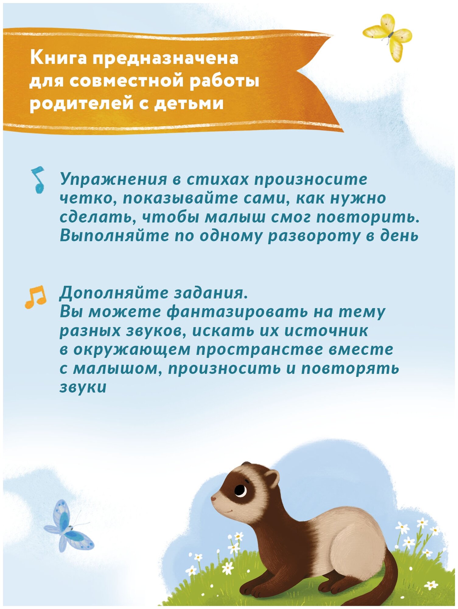 Упражнения в стихах произносите четко, показывайте сами, как нужно сделать, чтобы малыш смог повторить. Выполняйте по одному развороту в день.