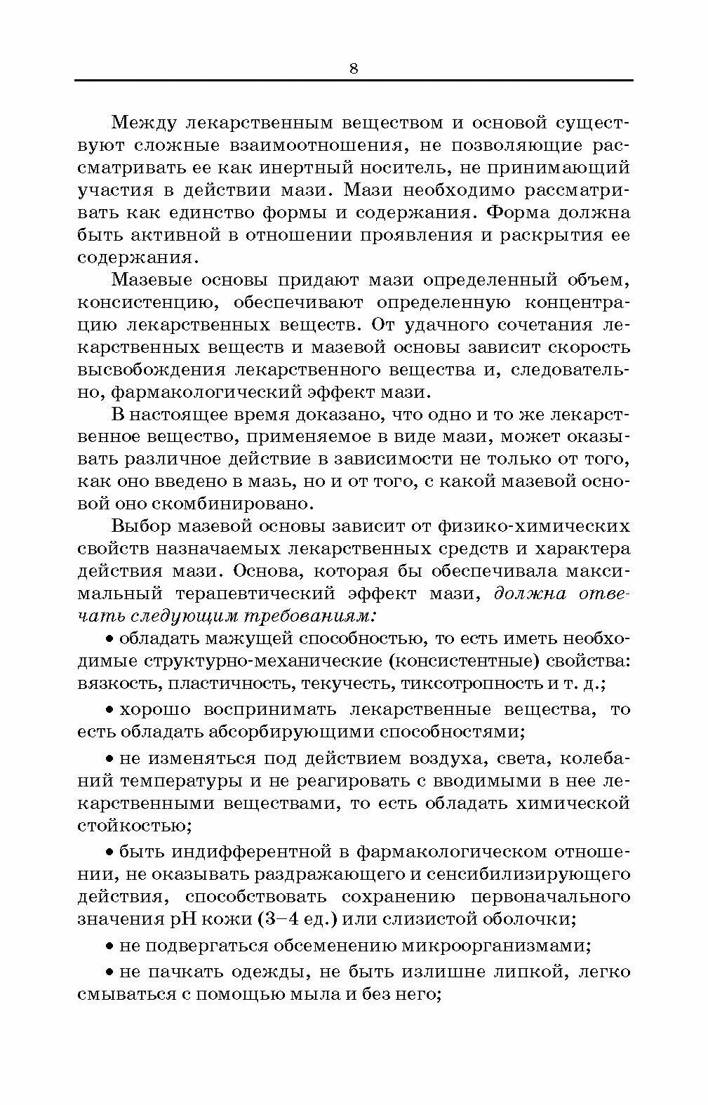 В пособии представлены вопросы для теоретической проработки изучаемых тем, рецепты и ситуационные задачи, а также расчетные задания и тесты для самоконтроля знаний, полученных в процессе изучения предлагаемого материала по производству и изготовлению мягких лекарственных форм.