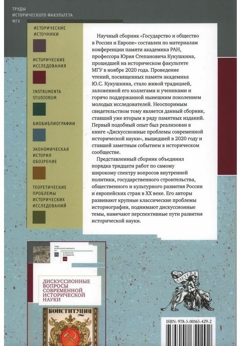 Государство и общество в России и Европе Памяти академика РАН Юрия Степановича Кукушкина (Сборник статей); Алетейя, 2022
