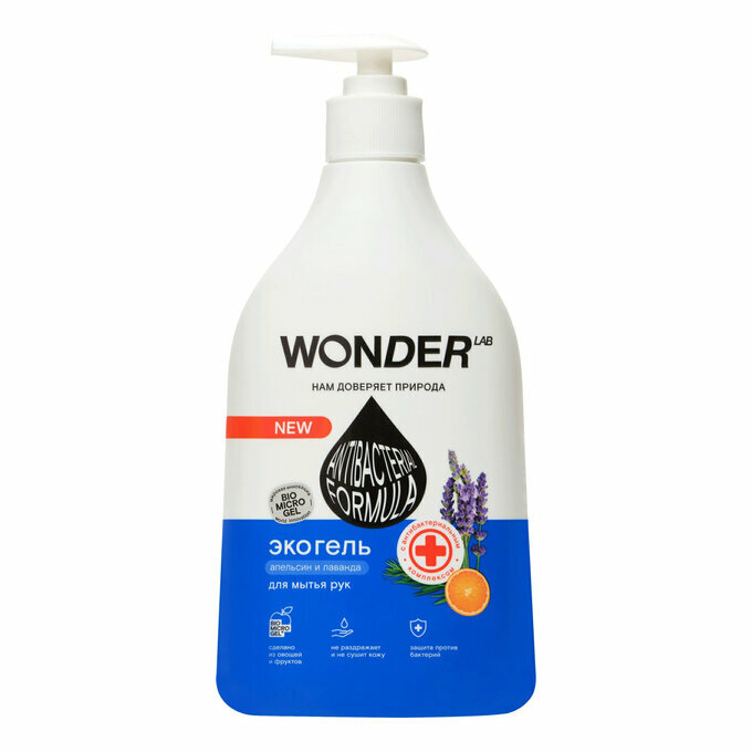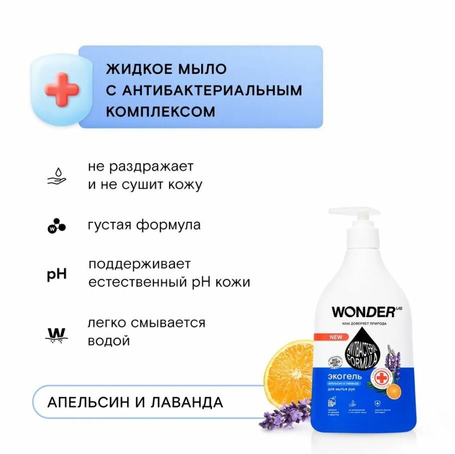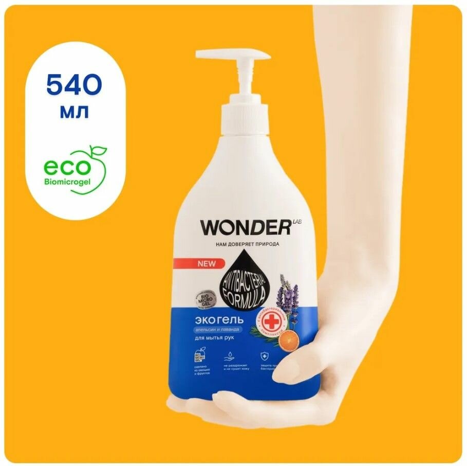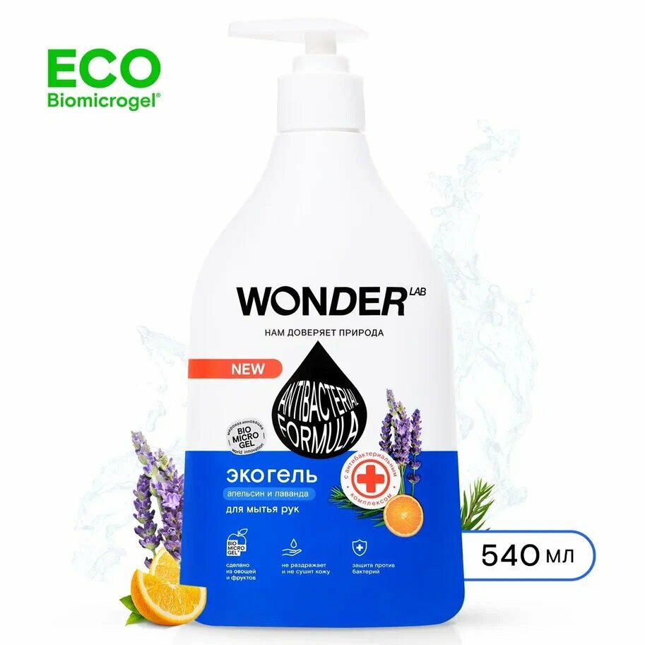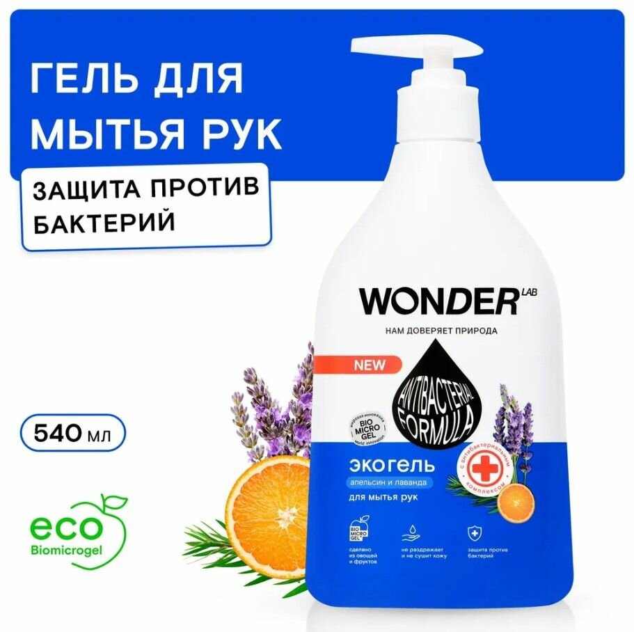 Жидкое мыло для рук Wonder lab Эко с антибактериальным комплексом Апельсин и лаванда 540мл