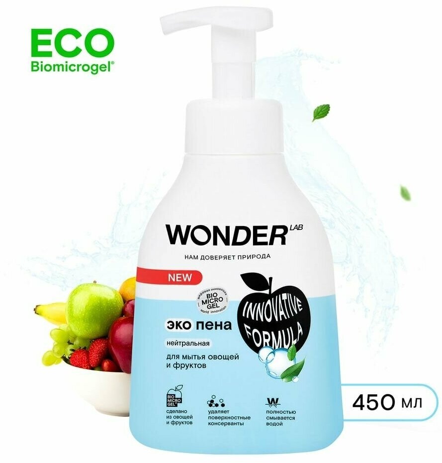 Сервис сравнения цен СкидкаГИД предлагает сравнить цены на товар «Экопена для мытья овощей и фруктов Wonder Lab Нейтральная 450мл»