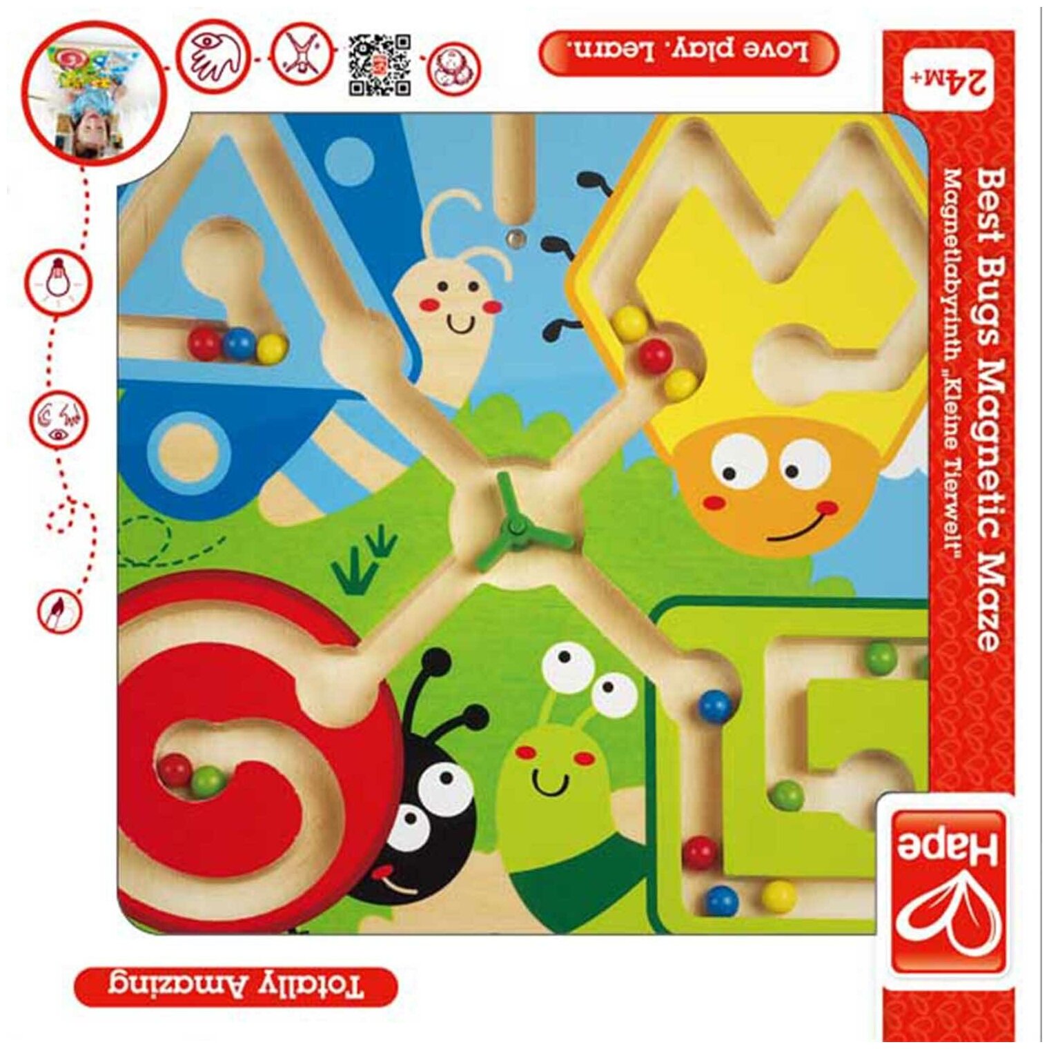 Деревянная игрушка Hape Магнитный лабиринт с шариком Жуки