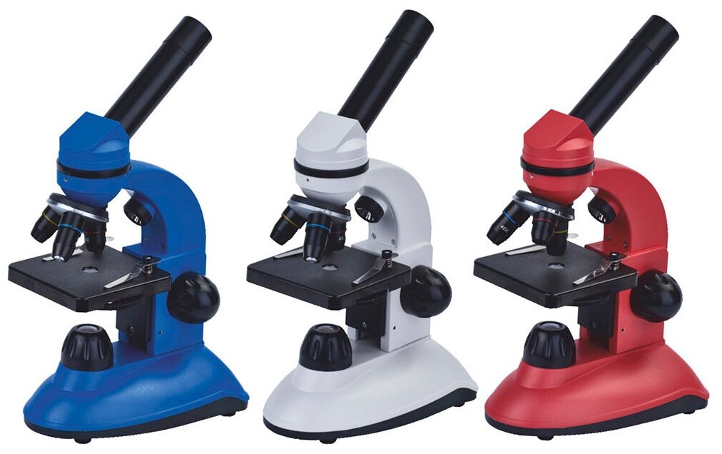| Оптическую систему микроскопа составляют монокулярная насадка и револьверное устройство, вмещающее 3 объектива. Увеличение прибора находится в диапазоне от 100 до 900 крат, что вполне достаточно для большинства базовых исследований микромира. Предметный столик снабжен зажимами и дисковой диафрагмой. Подсветка расположена внизу, она сдвоенная | с одной стороны находится лампочка накаливания, работающая от батареек, а с другой зеркало, которое позволяет вести наблюдения при естественном освещении. |