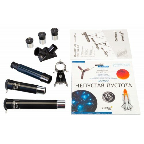 Телескоп Discovery Sky T60 – это классический рефрактор на азимутальной монтировке, что делает его отличным выбором для начинающего пользователя. С одной стороны, оптика позволяет наблюдать многие объекты ближнего космоса (особенно хорошо различима Луна), с другой – управление телескопом можно освоить всего за пару минут. Еще одно неоспоримое достоинство этого телескопа – сбалансированная и исчерпывающая комплектация, благодаря которой не придется ничего дополнительно докупать. Здесь есть даже познавательна