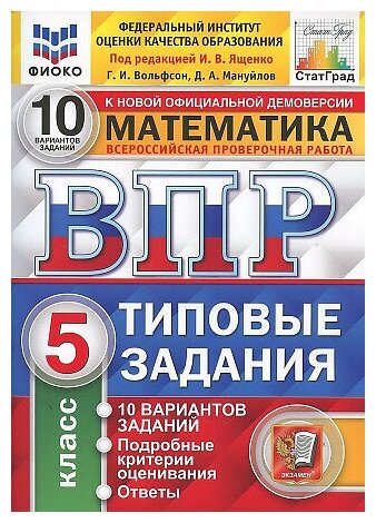 Всероссийская проверочная работа 10 вариантов заданий. Математика. 5 класс. Типовые задания. 10 вариантов заданий. Ответы и критерии оценивания (Вольфсон Георгий Игоревич; Мануйлов Дмитрий Анатольевич); Экзамен, 2023