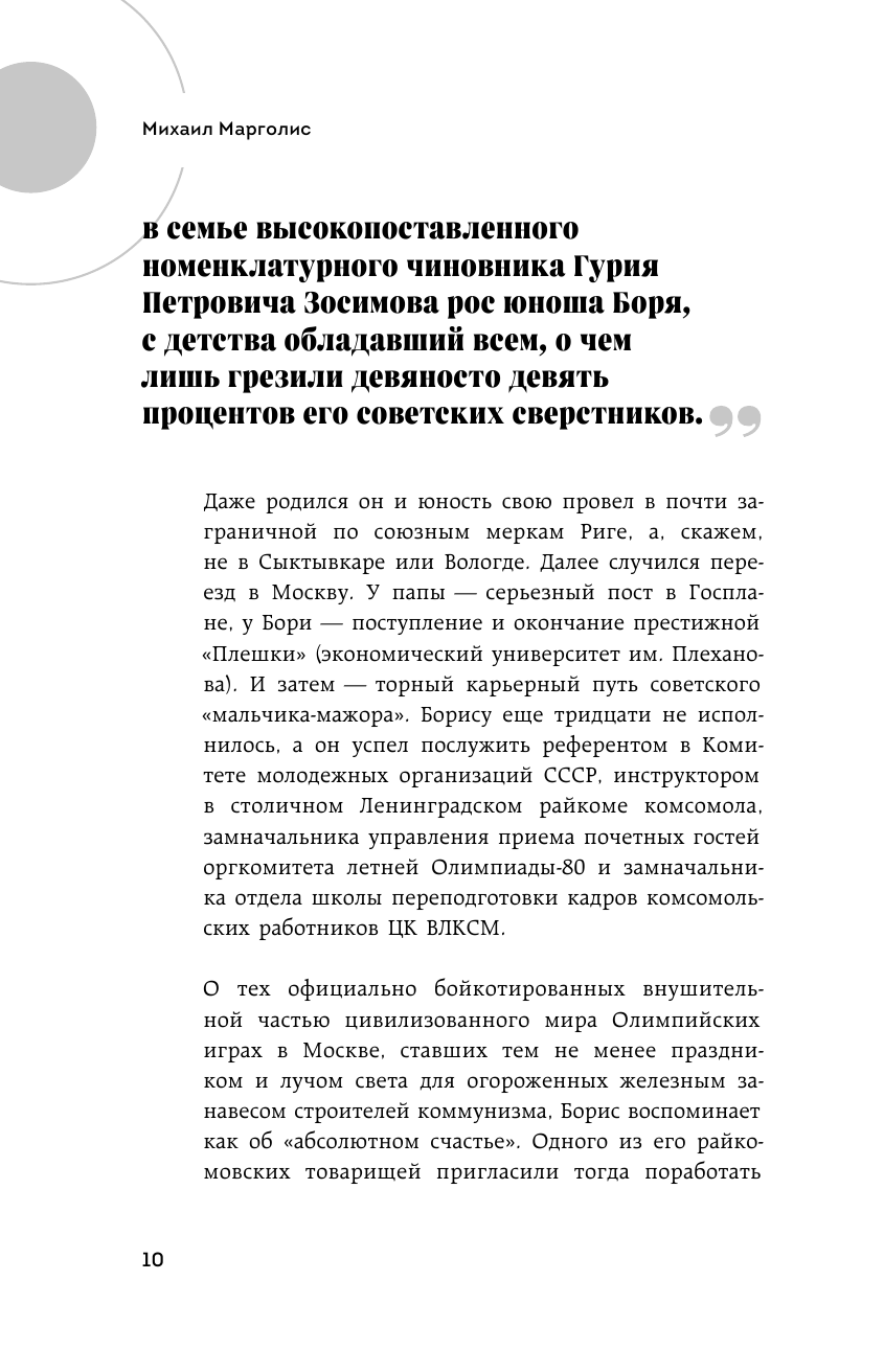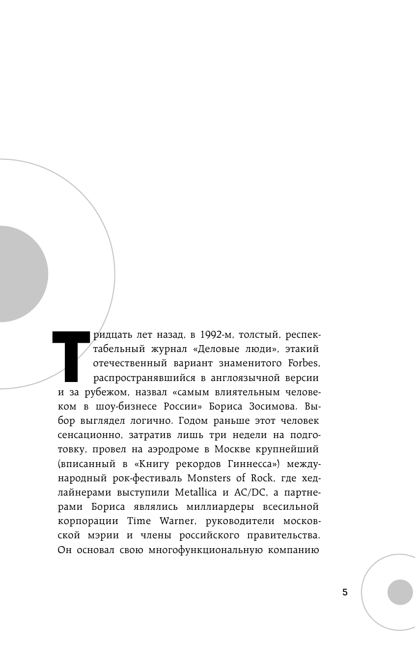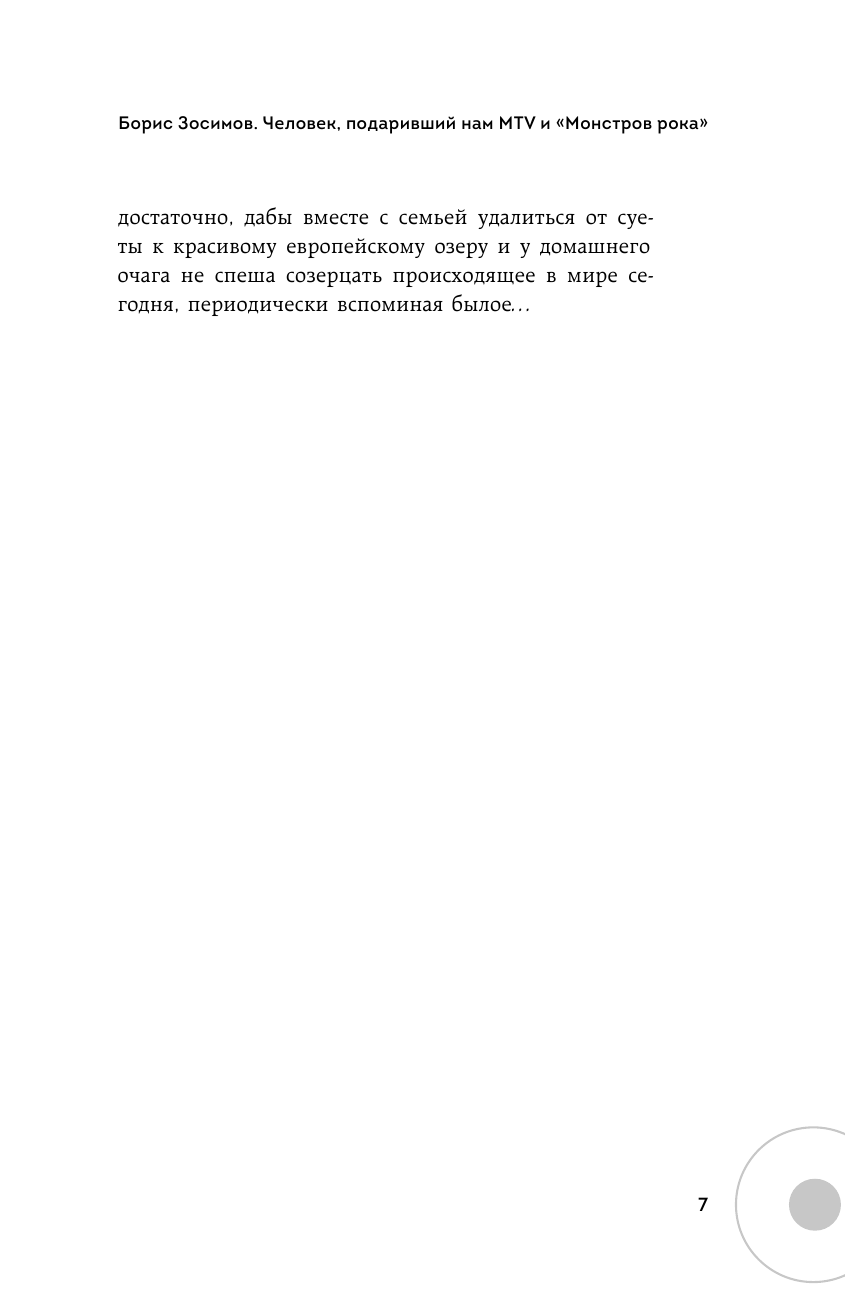 Не описать словами мою благодарность за издание этой книги! Я выросла на MTV Russia — под "Бодрое утро" с Шелест и Комоловым собиралась в школу, с Александром Анатольевичем узнавала последние музыкальные новости, еще были Василий Стрельников, Тутта Ларсен, Яна Чурикова и многие другие прекрасные телеведущие. Более подробно про эпоху MTV можно посмотреть в фильме Юрия Дудя. Но книга про Бориса Зосимова — основателя всего этого (прекрасного) безумия, это то, что нужно читать и перечитывать! Лучшая мотивационная и историческая книга про шоу-бизнес и музыку!