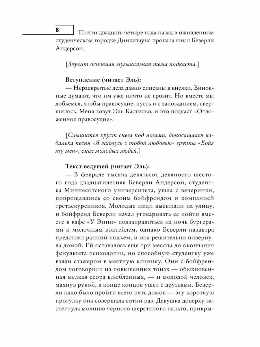 Куда он исчез? Полицейские, уверенные, что маньяки сами не останавливаются, убеждены: преступник умер. И только Эль Кастильо, ведущая известный на всю страну криминальный подкаст, считает, что убийца затаился и однажды напомнит о себе.