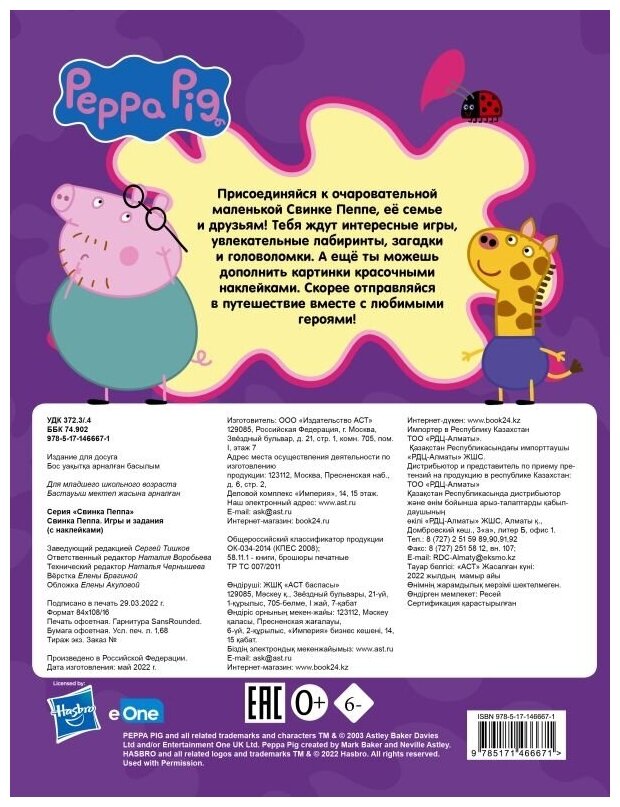 Свинка Пеппа. Игры и задания (с наклейками) (Воробьева Наталья (редактор)); АСТ, 2022