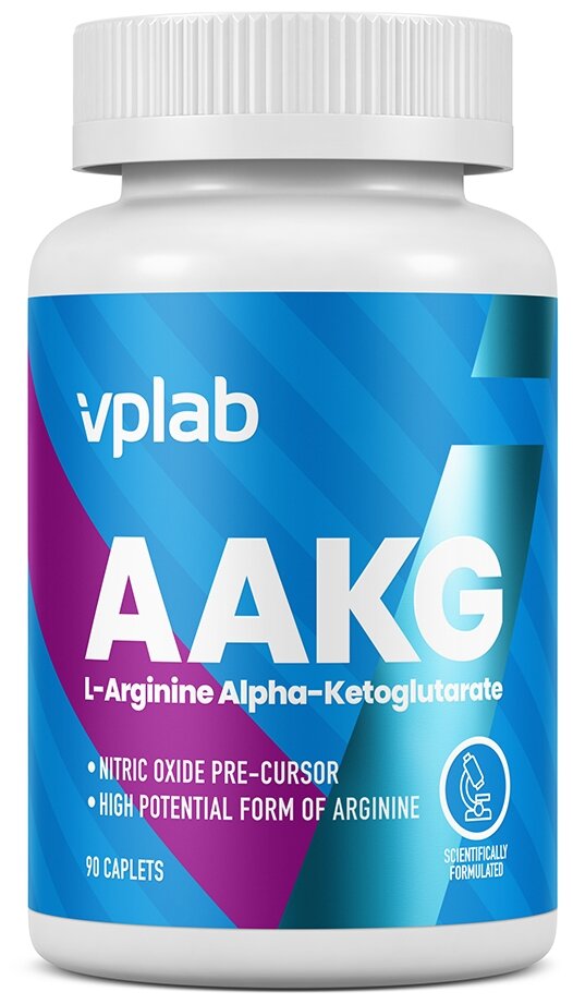 VPLAB AAKG – мощный предтренировочный препарат, значительно повышающий эффективность тренировок. AAKG (аргинин альфа-кетоглютарат) - это смесь соли L-аргинина (70%) и альфа-кетоглутаровой кислоты (30%). Аргинин - стимулятор окиси азота, сосудорасширяющая аминокислота. Расширение сосудов улучшает доставку микро- и макронутриентов к работающим мышцам и улучшает отток продуктов распада белков.AAKG:улучшает поставку питательных веществ в мышечные ткани;ускоряет регенерацию мышц;стимулирует энергетический обмен;является антиоксидантом;способствует укреплению иммунитета;стимулирует выработку гормона роста.Применение AAKG позволяет справляться с высокоинтенсивными тренировками, повышает мышечную выносливость и способствует ускоренному восстановлению после физических нагрузок.В связи с основным действием аргинина (расширение сосудов) его применение возможно и в качестве стимулирующего средства для повышения потенции.Адекватная дозировка для L-аргинина - 3 г, верхняя допустимая дозировка - 9 г. Побочные эффекты: у незначительного числа потребителей может понизиться артериальное давление, поэтому дозировку следует наращивать постепенно.Хорошо усваиваемая форма L-аргинина.Вкус: нейтральный1 штука содержит L-аргинин - 1000 мг