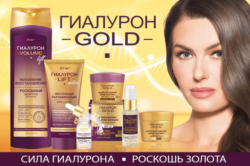 | Состав | вода, гиалуронат натрия, глицерин, бетаин, ПЭГ-6 глицерилкаприлат/капрат, ПЭГ-12 диметикон, ПЭГ-40 гидрогенизированное касторовое масло, камедь биосахарида-1, феноксиэтанол, метилпарабен, этилпарабен, пропилпарабен, коллоидное золото, парфюмерная композиция, 2-бром-2-нитропропан-1,3-диол, папаин, карбомер, 1,2-гександиол, каприлилгликоль, альгин, гидролизованная гиалуроновая кислота, бензилсалицилат, бутилфенилметилпропиональ, гексилциннамаль, лимонен. |