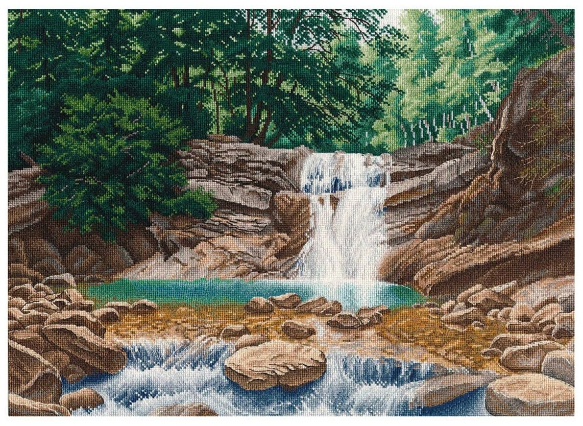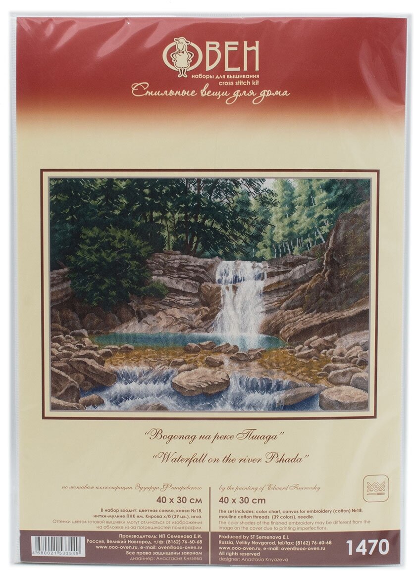 Наборы бренда ОВЕН – это прежде всего оригинальные сюжеты, напоминающие живопись акварелью, мелками, маслом. Чтобы вышить такую картину, не потребуются особые навыки – достаточно проявить терпение, усидчивость и аккуратность. Следуйте инструкции, выкладывайте равномерные стежки, и постепенно из-под вашей иглы начнет проступать картина со сложной цветовой гаммой, плавными переходами света и тени. В наборе для вышивки крестом Водопад на реке Пшада используется канва Aida 18 каунта – этот материал позволяет вышивать небольшими стежками и прекрасно подходит для схем с подробной детализацией. Совет: если вам не хватает опыта, сделайте разметку канвы, ориентируясь по схеме. Разметка поможет вам быстрее закончить вышивку и избежать возможных ошибок. В наборе: канва Aida 18 ZWEIGART, нитки мулине ПНК им. Кирова, игла, цветная символьная схема, инструкция. Количество цветов: 39.