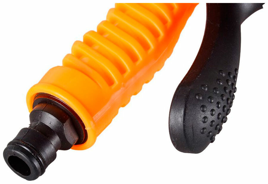 Пистолет-распылитель позволяет регулировать напор воды, а также снабжен курком.