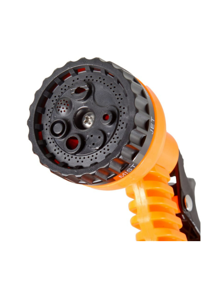 Пистолет-распылитель позволяет использовать семь различных режимов полива: сильная струя, мягкое распыление или мелкодисперсное распыление.