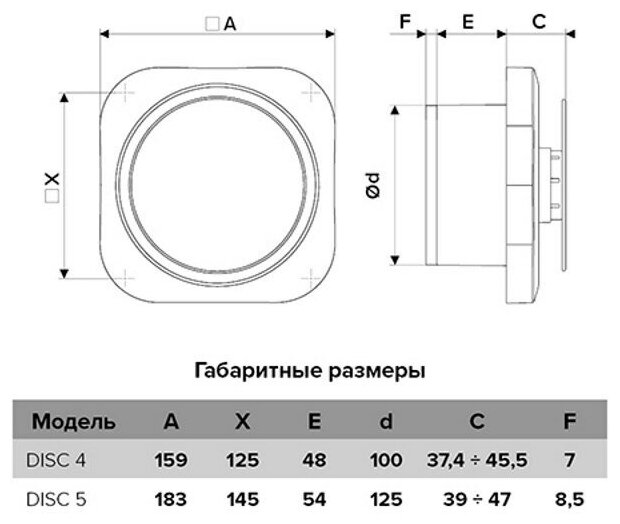 Вентилятор DISC 4C применяется для постоянной и периодической вентиляции санузлов, душевых и ванных комнат, кухонь и других бытовых помещений. Оснащен обратным клапаном и предохранителем от перегрева. Он останавливает работу вентилятора в целях электро- и пожаробезопасности при температуре двигателя +115°С - +125°С. Легкосъемная лицевая панель позволит без проблем снимать ?фасад? устройства и следить за чистотой вентилятора. Корпус и крыльчатка выполнены из высококачественного и прочного ABS-пластика, который не подвержен старению и надежно прослужит весь срок использования. Благодаря стильному дизайну данная модель идеально дополнит любой интерьер.