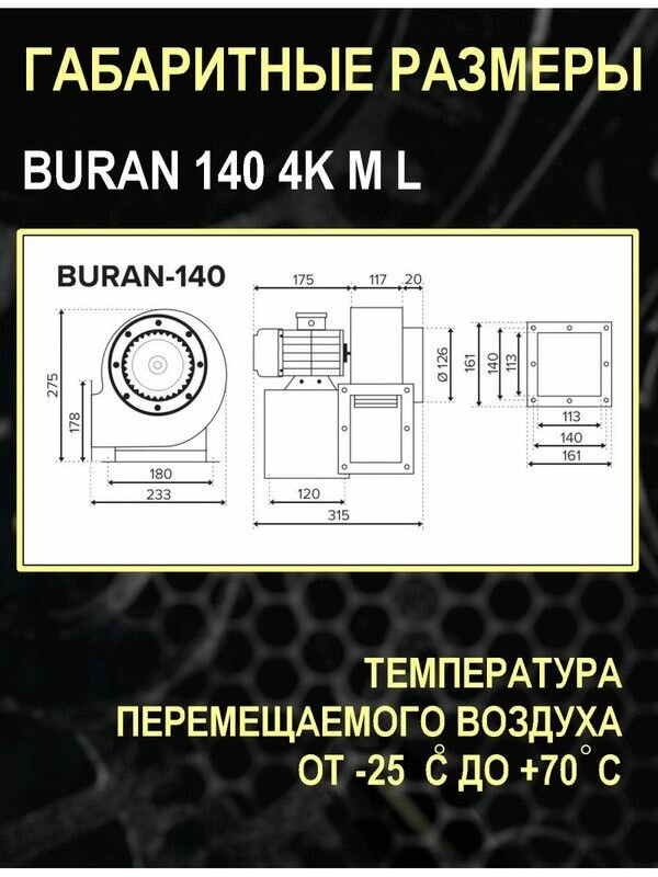 вентилятор радиальный d=136мм фланец 117*178мм buran 140 4k m l левосторонний 220в эра Era Pro
