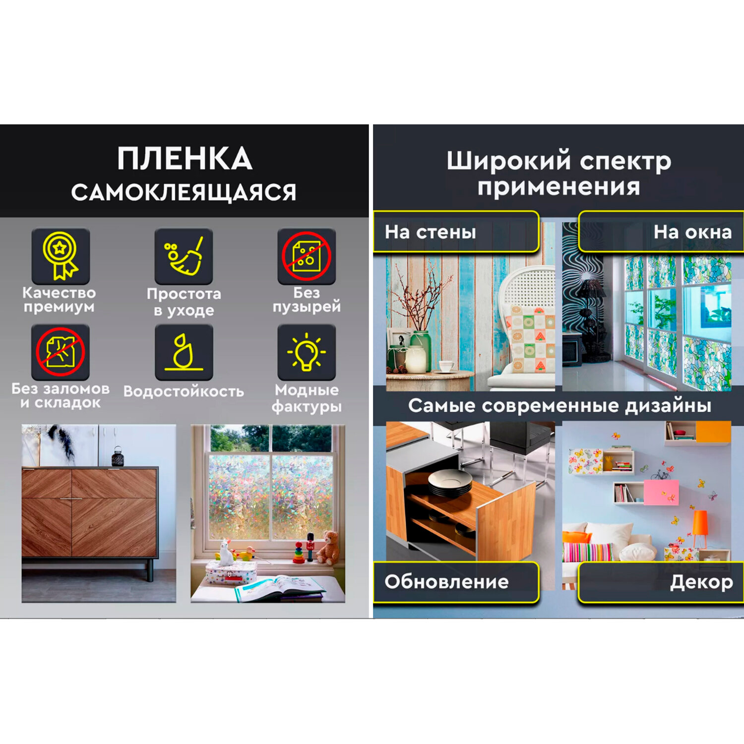 Самоклеящаяся пленка для защиты окон без использования штор от проникновения яркого света, для придания стильного оформления, а также для декоративной отделки или других практических целей. Изготовлена из материала с эффектом прилипания, крепится легко и быстро за счет статических сил, без использования клея на очищенную поверхность при помощи воды, при этом возможна корректировка. Можно использовать в помещениях с повышенной влажностью.