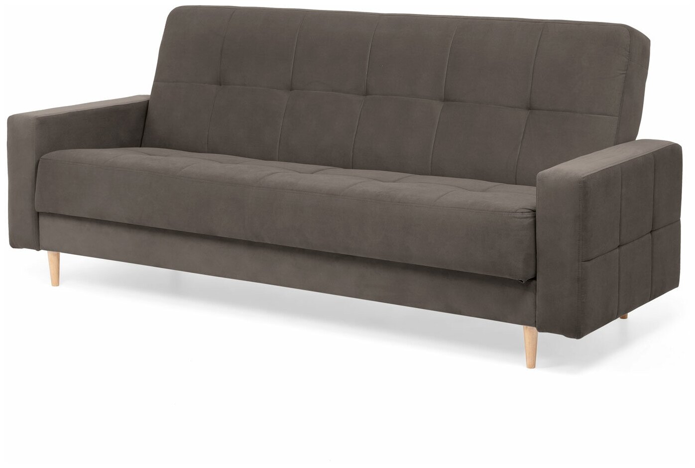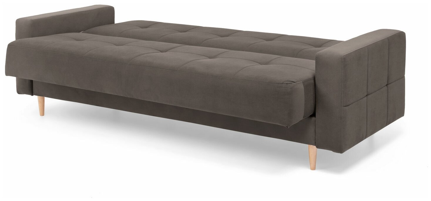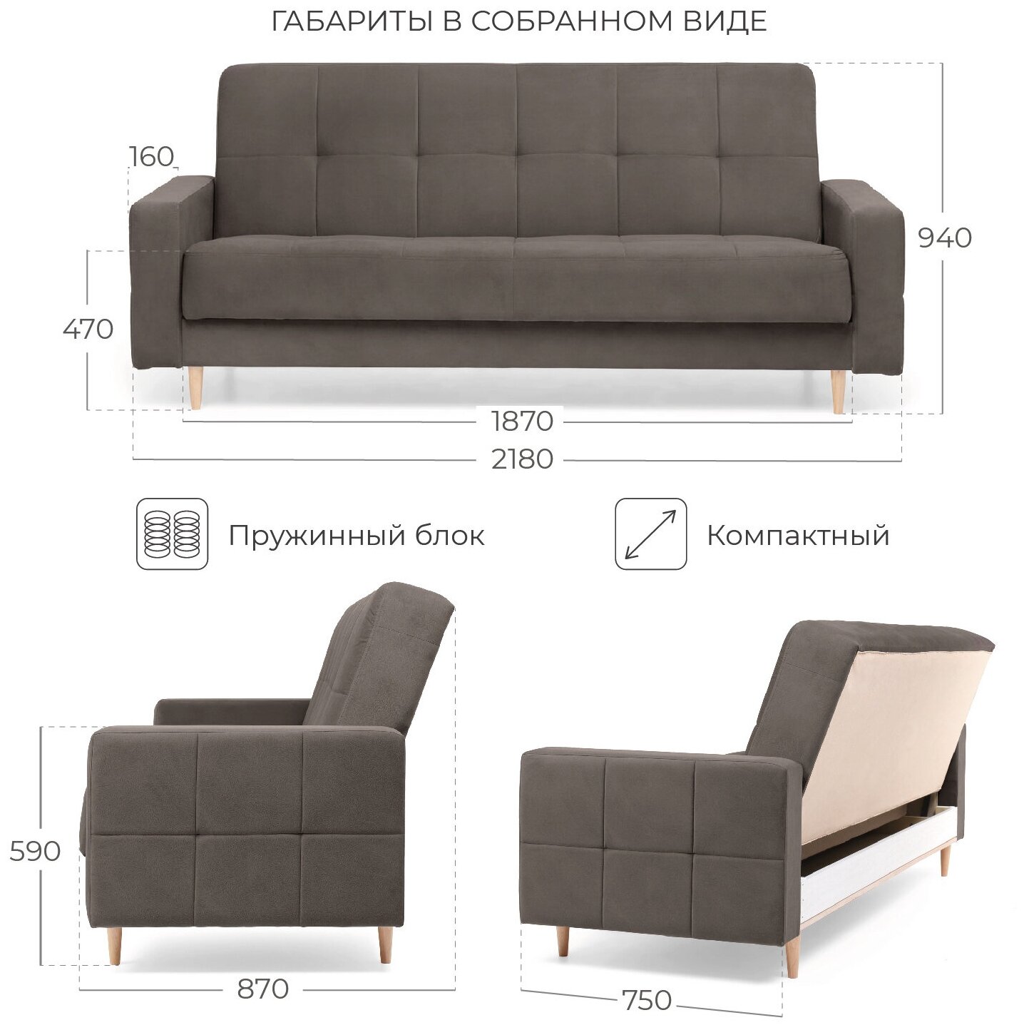 Трехместный прямой диван-кровать Bruno Hit 2180х870х940 станет замечательным дополнением гостиной, спальни, прихожей, может использоваться как детский диван. Дизайн модели выдержан в скандинавском стиле. Элегантные опоры создают высокий просвет над полом, что облегчает уборку и создает ощущение визуальной легкости. Мягкая, слегка наклоненная спинка обеспечивает удобную посадку. Широкие подлокотники добавляют комфорта и уюта. В диване установлен надежный, проверенный временем механизм трансформации ?Книжка?. Его легко раскладывать и складывать. Под сиденьем есть ящик для постельного белья. Спальное место размером 1870x1170 можно расположить вдоль стены, что удобно для жителей малогабаритных квартир. Высота сиденья 470мм. Каркас выполнен из крепких материалов: фанеры, бруса, мебельной плиты. Классический пружинный блок ?Боннель? и пенополиуретан повышенной плотности выдерживают нагрузку до 100 кг на посадочное место. Обивка из велюра ? износостойкая и приятная на ощупь. Ткань не мнется,