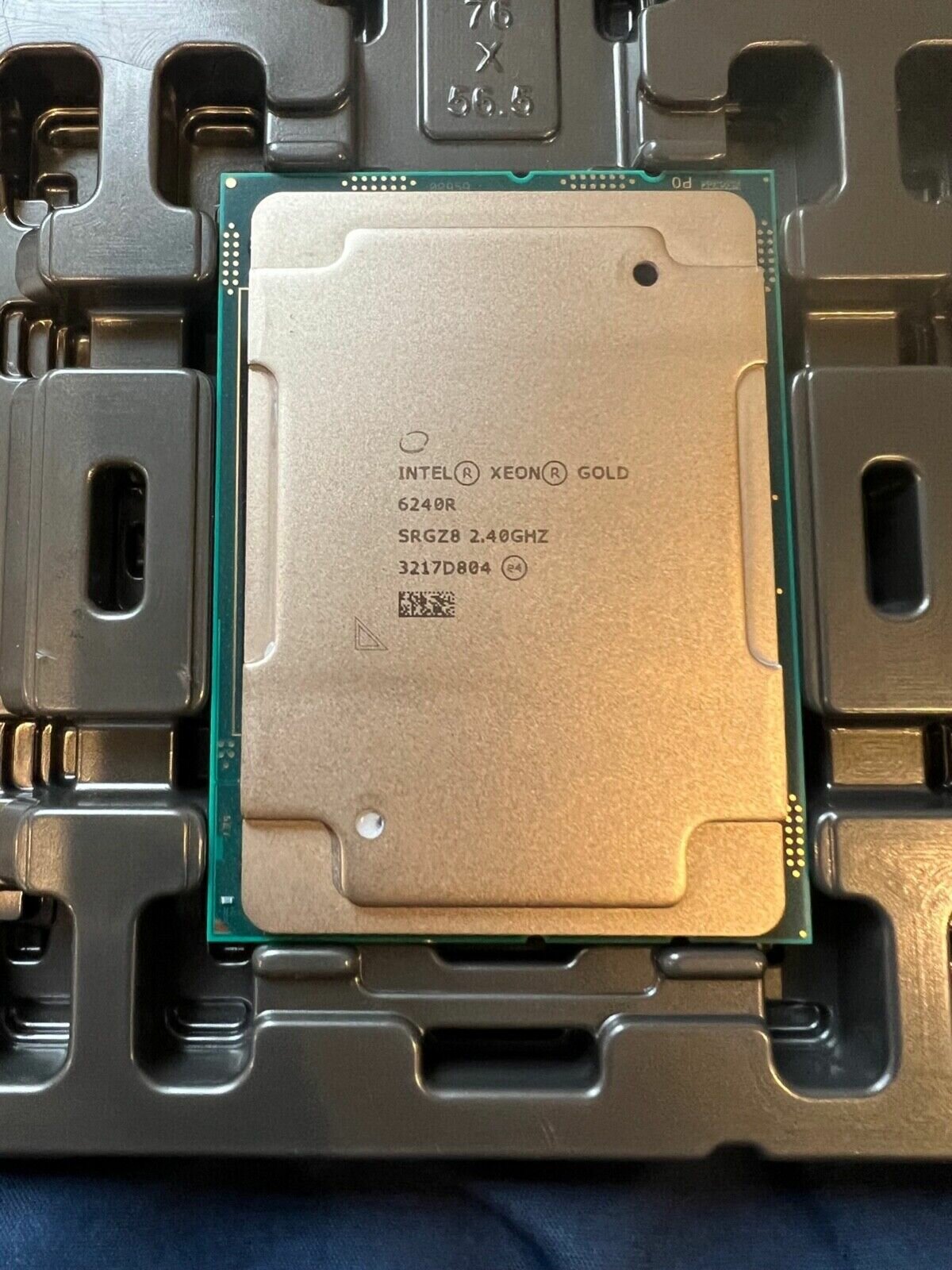 24-ядерный процессор Intel Xeon Gold 6240R с базовой частотой 2.4 ГГц предназначен для использования в одно/двухпроцессорных серверных системах с разъемами LGA 3647, кэш-память составляет 35.75 МБ, тепловая мощность — 165 Вт.