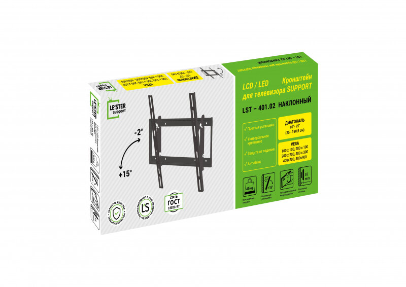 Сервис сравнения цен СкидкаГИД предлагает сравнить цены на товар «Кронштейн LST-401.02 Le'ster for TV 10"- 75" vesa 400*400 (LST40102)»