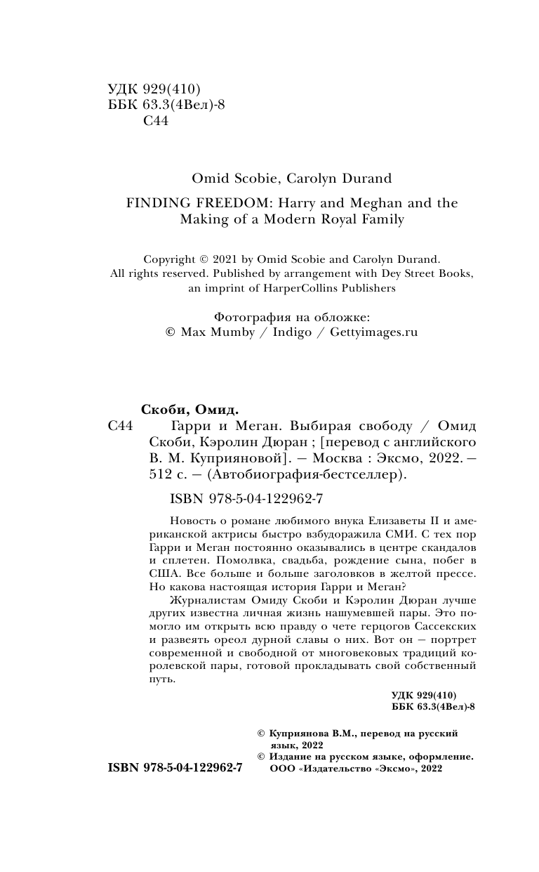 Гарри и Меган. Выбирая свободу (Омид Уильям Скоби, Кэролин Дюран); Эксмо, Редакция 1, 2022
