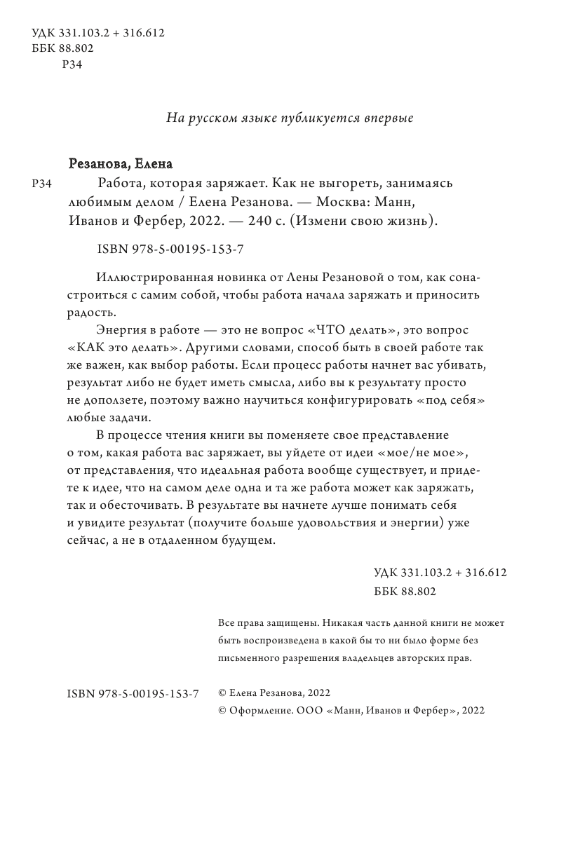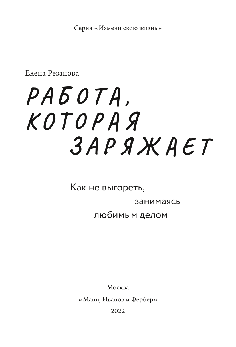 Работа которая заряжает. Как не выгореть занимаясь любимым делом (Елена Владимировна Резанова); Манн, Иванов и Фербер, 2022