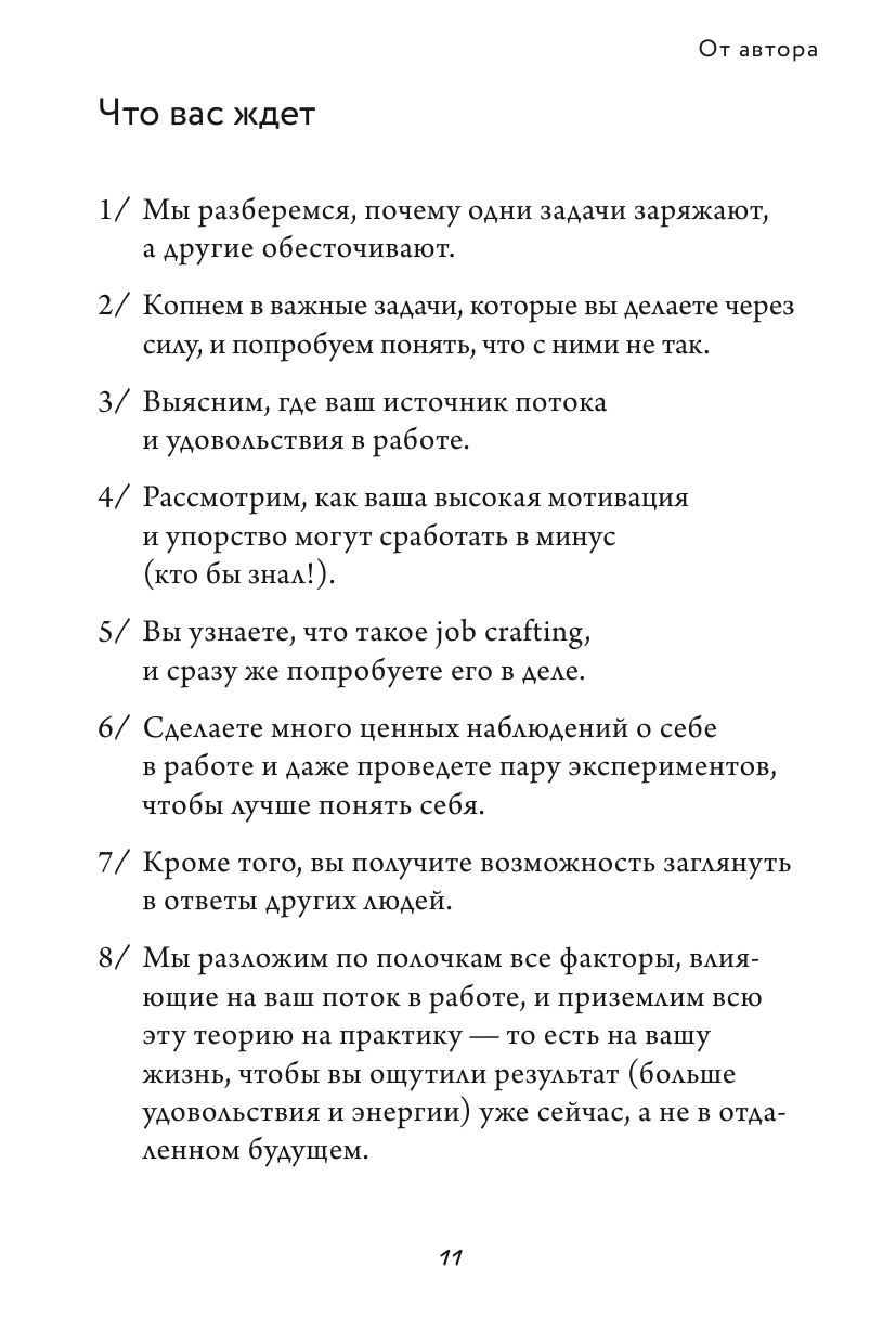С книгой вы сделаете много ценных наблюдений о себе в работе. Проведете несколько экспериментов, чтобы лучше понять себя. Найдете такой режим, в котором сможете получать удовольствие от работы в реальной жизни, здесь и сейчас.