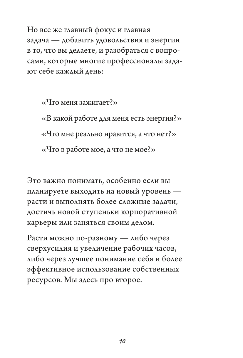 Главный фокус по заявлению автора книги - добавить удовольствия и энергии, разобраться с вопросами, которые профессионалы задают себе каждый день: