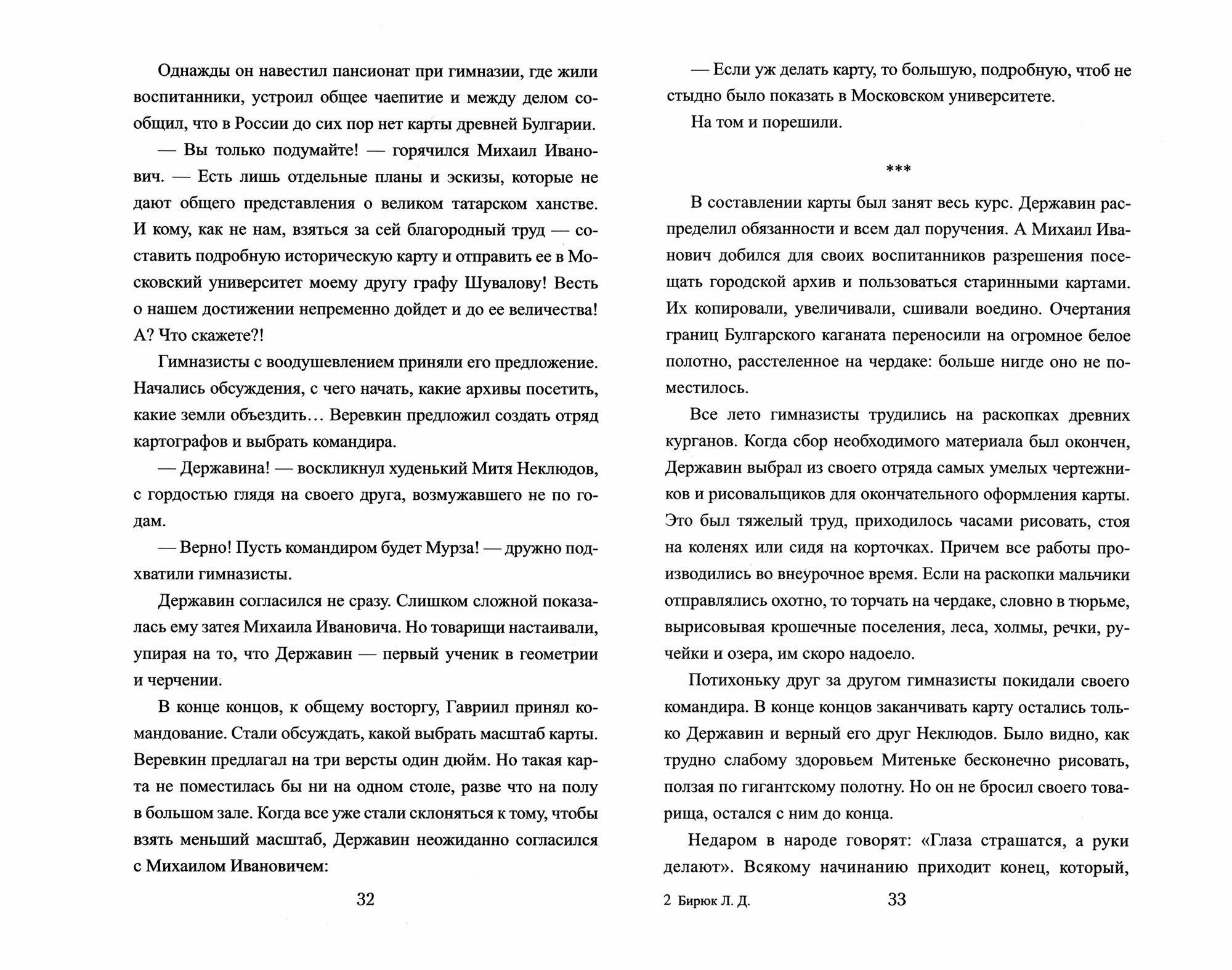 Книга написана в традициях "Школьной библиотеки" былой эпохи: последовательно излагается жизненный путь Державина и его немалые приключения. В жизни его было много интересного, помимо стихов и пушкинского "благословения на краю гроба", по которому его широкая публика в основном и знает. К языку и стилю претензий нет, манера изложения ровная, гладкая. Но не хватает пометки "Для старшего школьного возраста". Для ознакомления (особенно школьников) с биографией екатерининского "чекиста" и поэта книга подходит прекрасно. Но невольно наводит на мысль, что этот исторический материал мог бы послужить основой для более углубленного и развернутого повествования. Это не в упрек автору, а в предупреждение читателю.