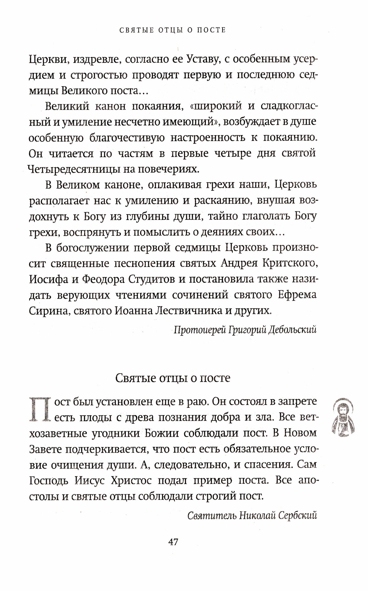 Каждый день Великого поста имеет особенное значение для нашего спасения, особый смысл. Поэтому в этом сборнике для правильного понимания сути поста, а также тем и особенностей составляющих его дней и периодов, представлены поучения, отрывки из проповедей, примеры богоугодной жизни христианских подвижников и важные сведения, взятые из творений и трудов святых отцов и известных христианских подвижников благочестия и проповедников.