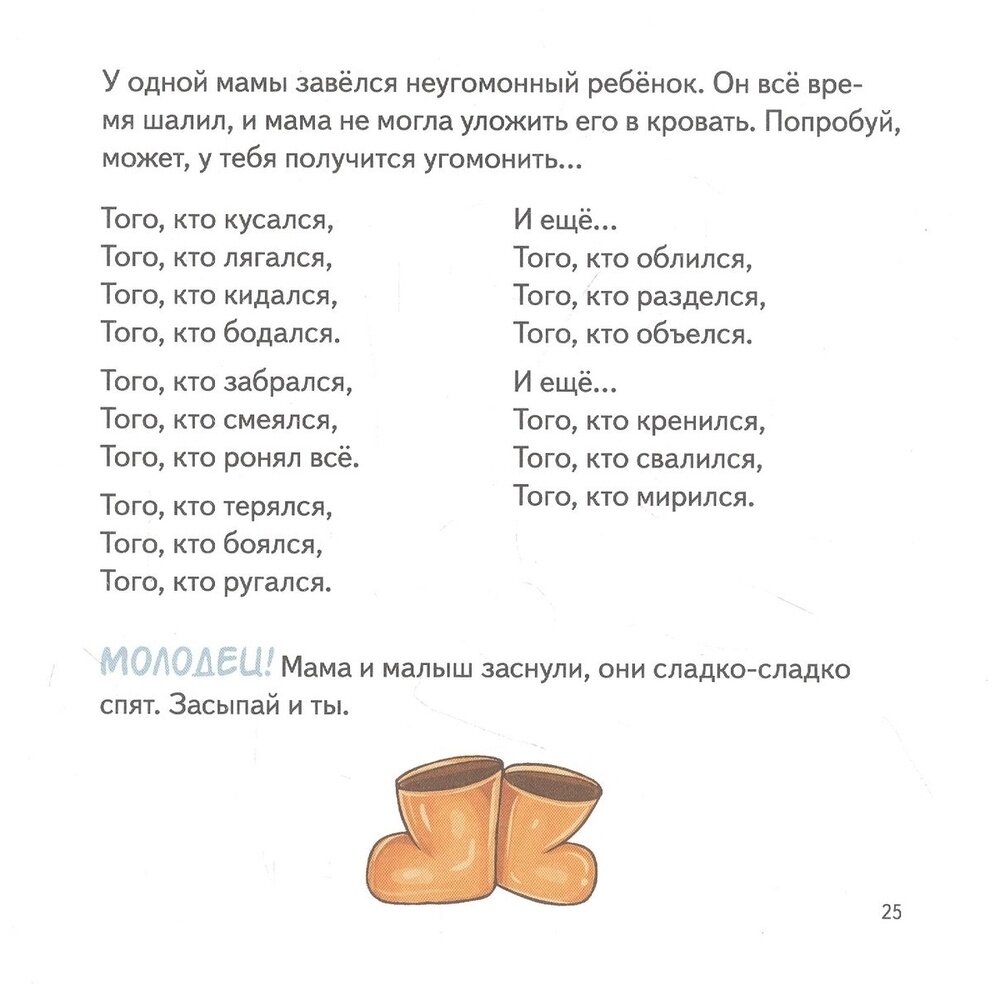 Малыш отказывается ложиться спать? Мы знаем, что поможет всем родителям и детям - книжка-игра про непослушного мальчишку! Того, который кусался, который лягался, который бодался! А потому, что не хотел спать, как и многие дети. Ведь вокруг столько всего интересного - и всё нужно потрогать, изучить, попробовать на вкус и задать вопросы обо всём! На каждой странице главный герой хулиганит, а читатели играют с ним, следуя подсказкам. Для ежедневных занятий с малышом есть дополнительные советы по работе с книгой - задания на счёт, знакомство с цветом, внимание и логику.