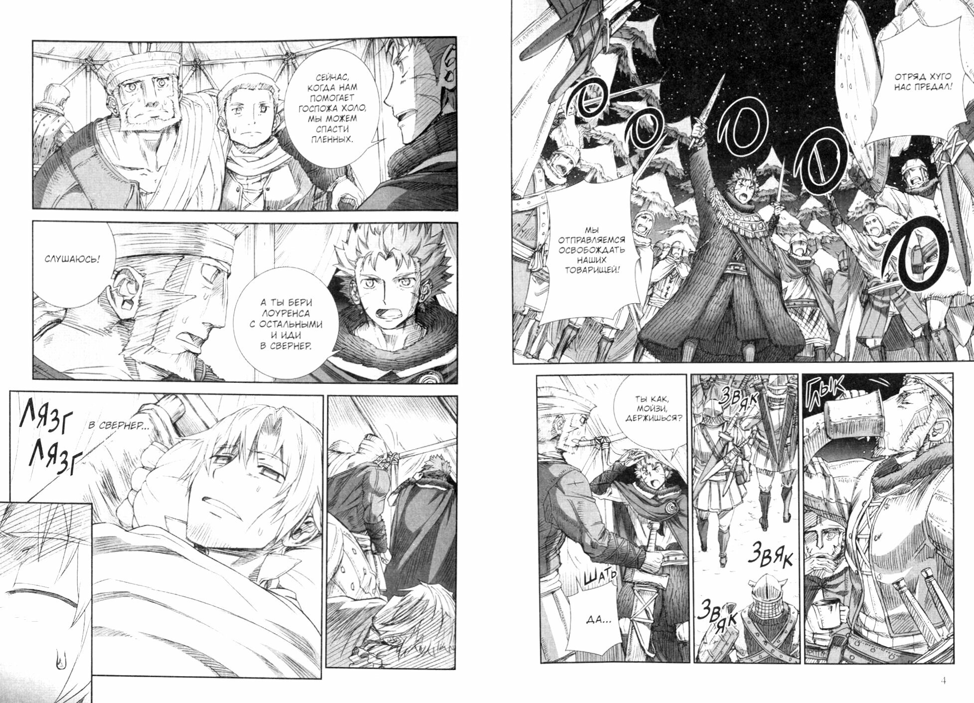Оказав помощь Хильде и его фракции консерваторов из компании Дебау, Лоуренс вступил в войну с радикалами, но, прислушавшись к словам Холо, решает выйти из боя. И тут появляется правитель местных земель Миллике. Неужели он хочет отдать Хильде в руки его врагов?..
