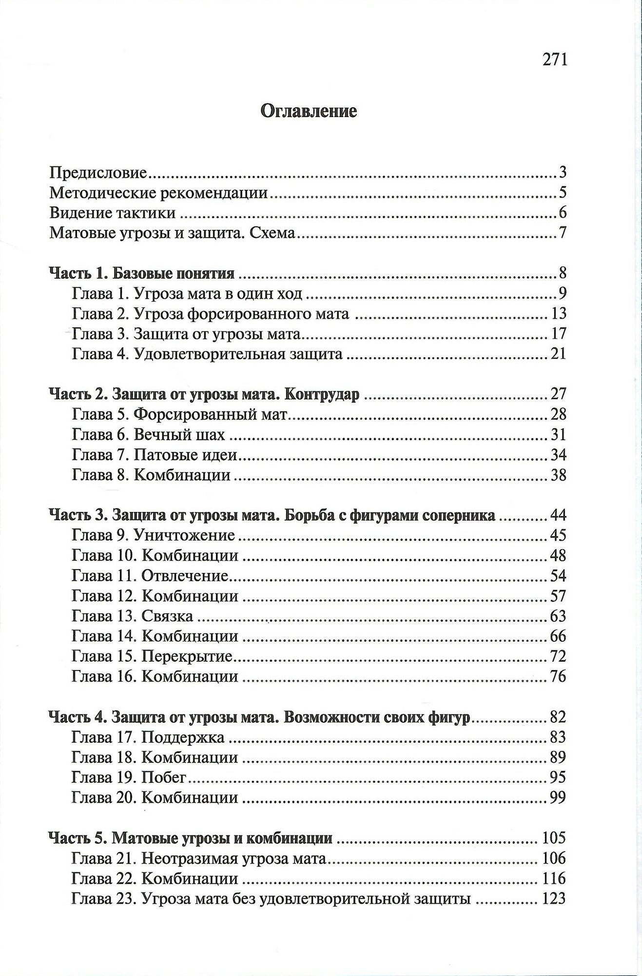 Книга содержит 1000 тщательно проверенных задач, из которых 924 – для самостоятельного решения. Учебник разбит на 28 глав, большая часть из которых посвящена защите от матовых угроз. В оставшихся главах подробно изучаются атакующие действия – матовые угрозы и комбинации. Все элементы матовой комбинации разбираются как по отдельности, так и в различных сочетаниях. Подробное объяснение нового материала сопровождается необходимым количеством заданий, предназначенных для отработки полученных знаний.