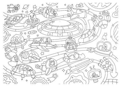 Племянники (4 и 6 лет) очень любят раскрашивать раскраски этой серии. А здесь ещё и излюбленная ими в последнее время тема космоса. Раскраска очень интересная, с многими мелкими деталями. Так что раскрашивать можно долго и сразу вдвоем. Кому-то более интересно будет раскрашивать космонавтов или инопланетян, а кому-то летающие тарелки и прочие космические аппараты. Поэтому подарю им на ближайший праздник, думаю, что им очень понравится.