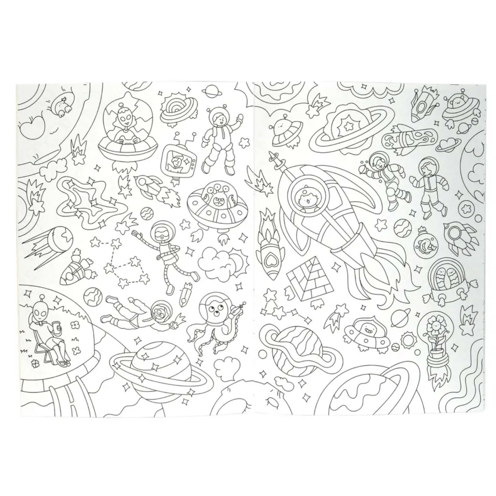 Раскраска понравилась. Брала для ребёнка 4 года, но даже 10летнему было интересно. Сама раскраска достаточно большая, яркая обложка, листов не много, но рисунков на них большое количество. Картинки разнообразные, и животные, и инопланетяне, и космонавты, и даже созвездия. Для мальчишек очень интересная. И цена по акции очень хорошая.