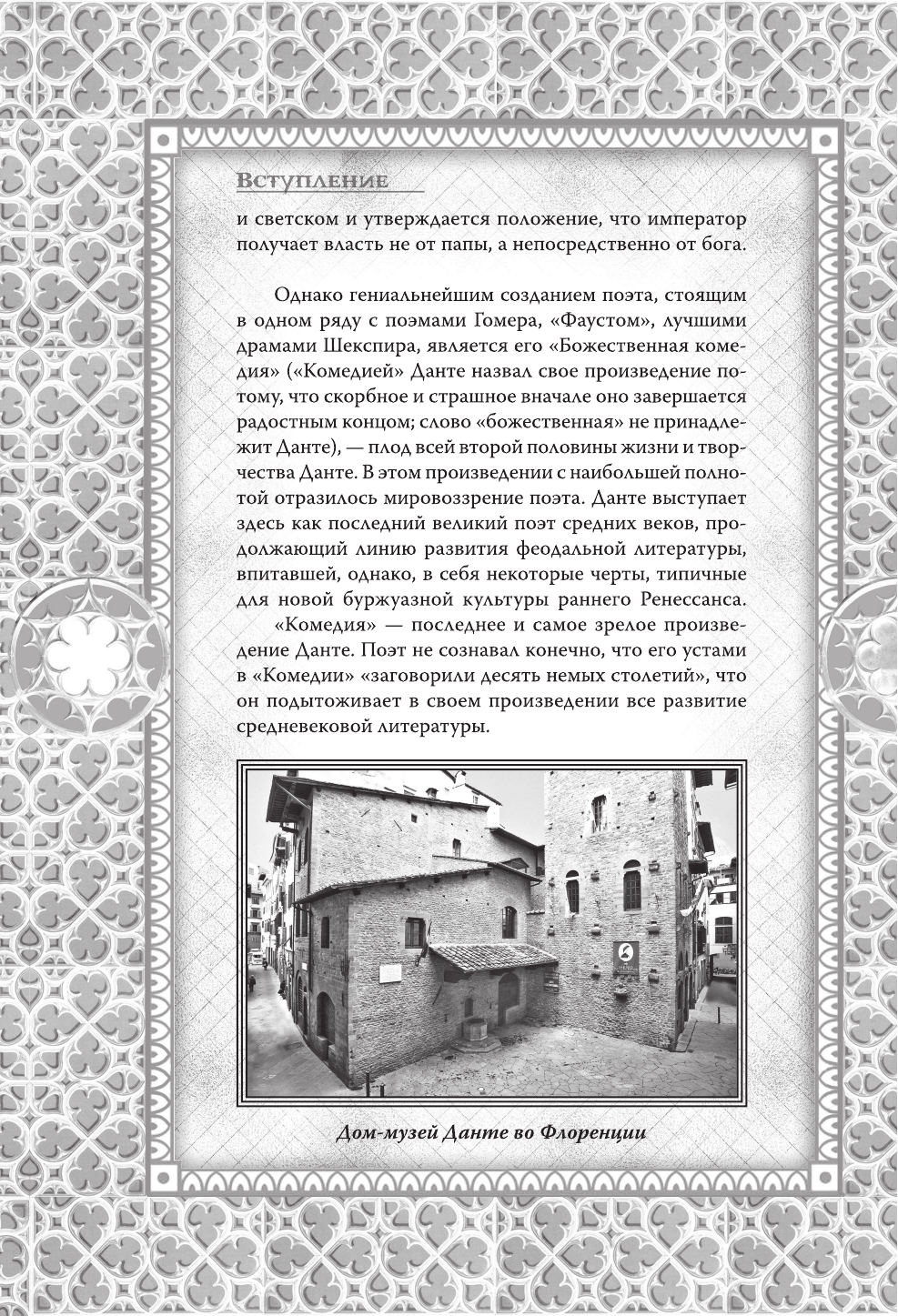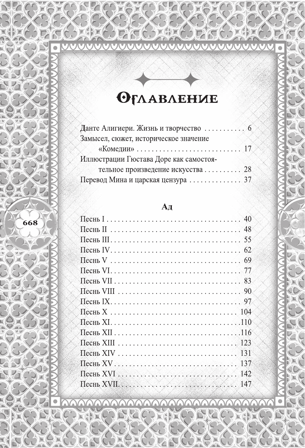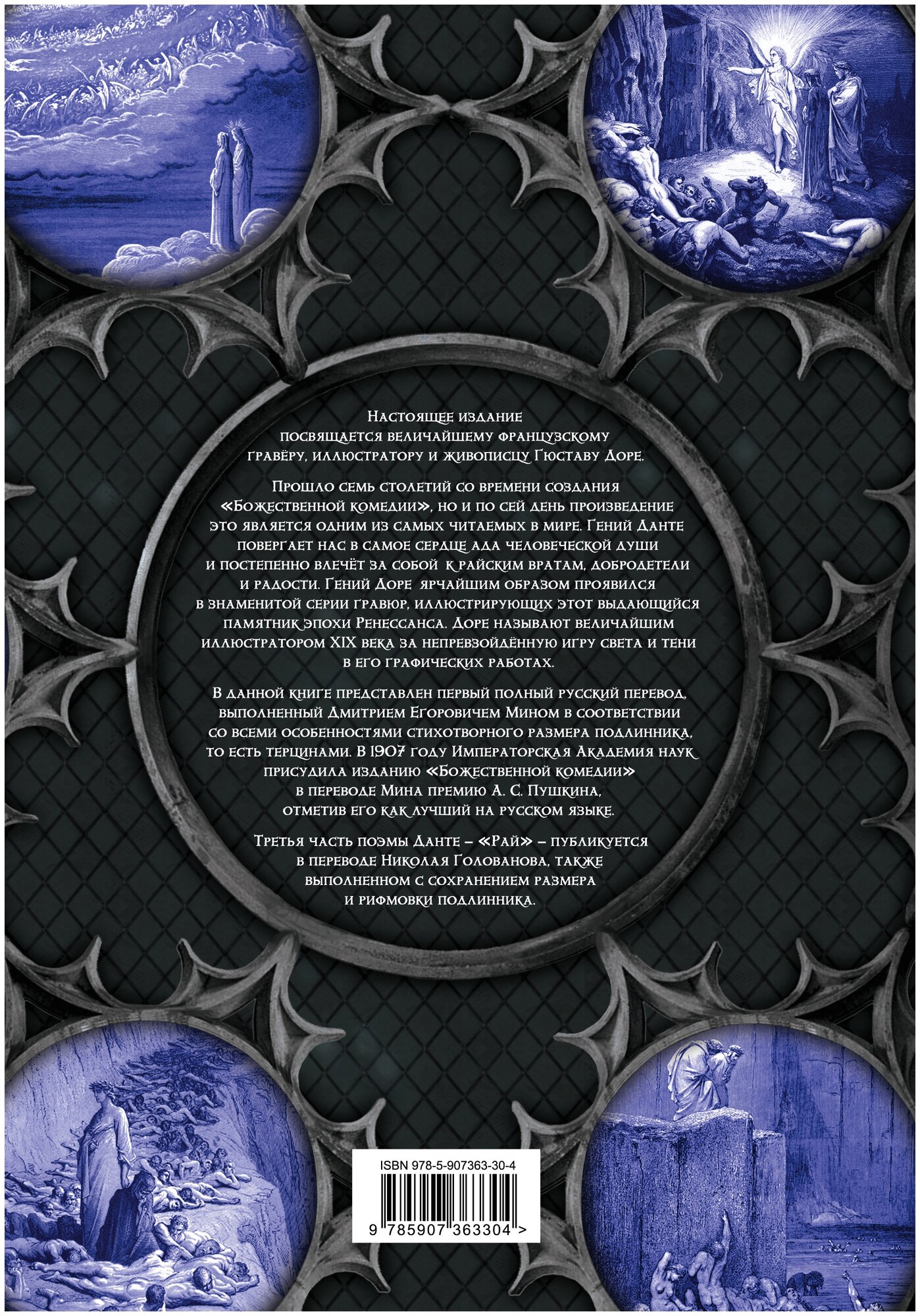 В данной книге представлен первый полный русский перевод, выполненный Дмитрием Егоровичем Мином в соответствии со всеми особенностями стихотворного размера подлинника, то есть терцинами. В 1907 году Императорская Академия наук присудила изданию «Божественной комедии» в переводе Мина премию А.С. Пушкина, отметив его как лучший на русском языке.