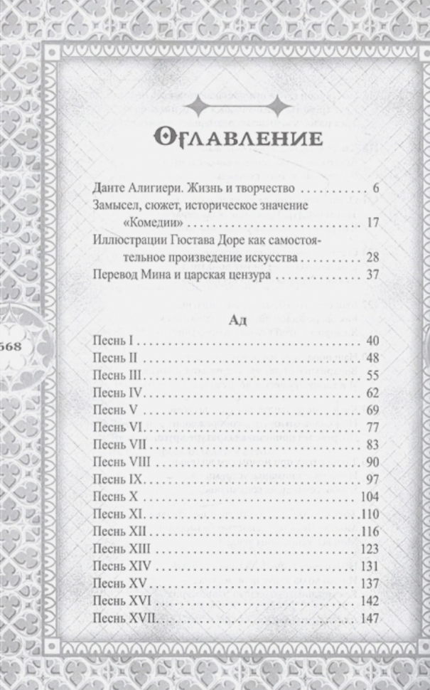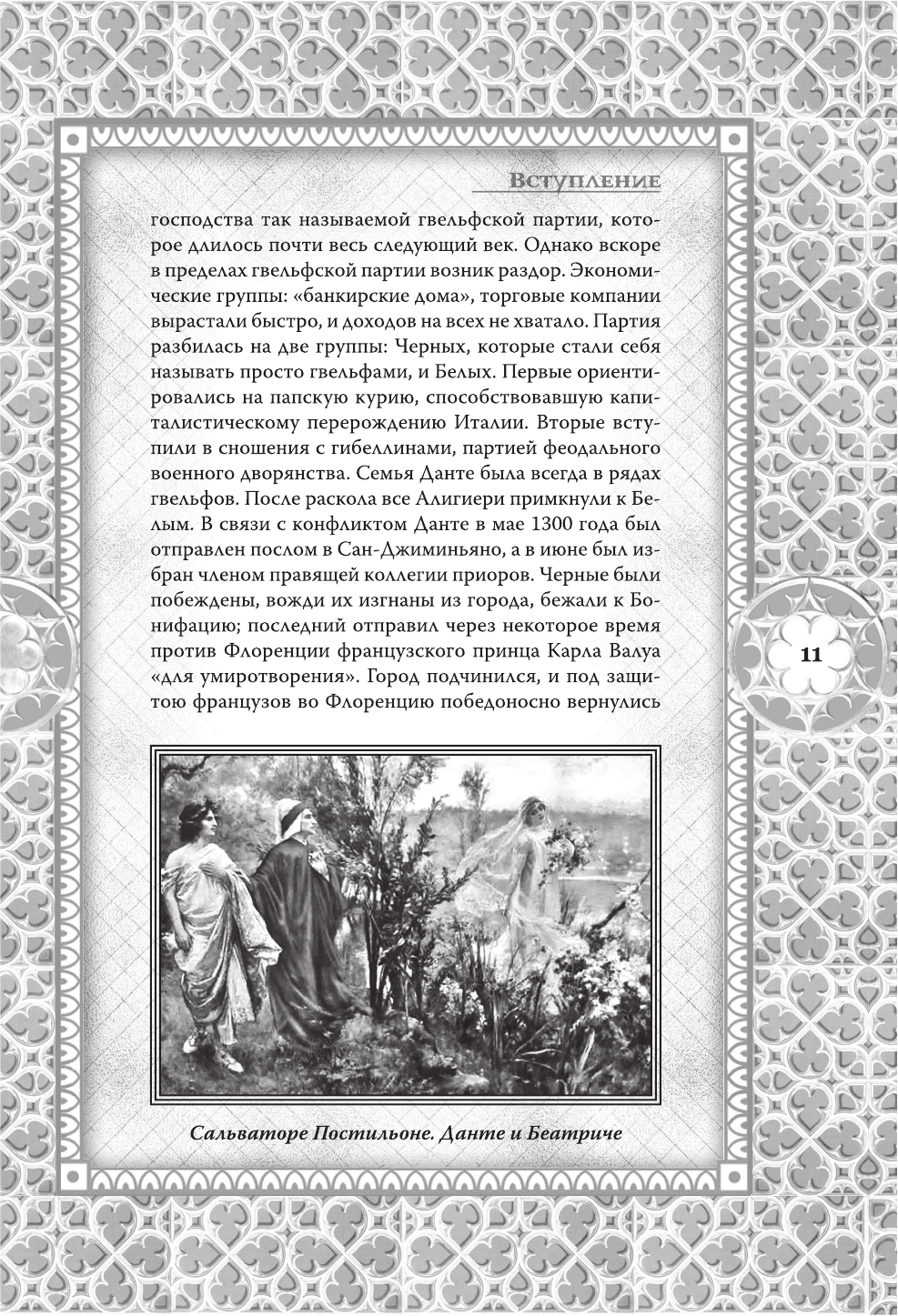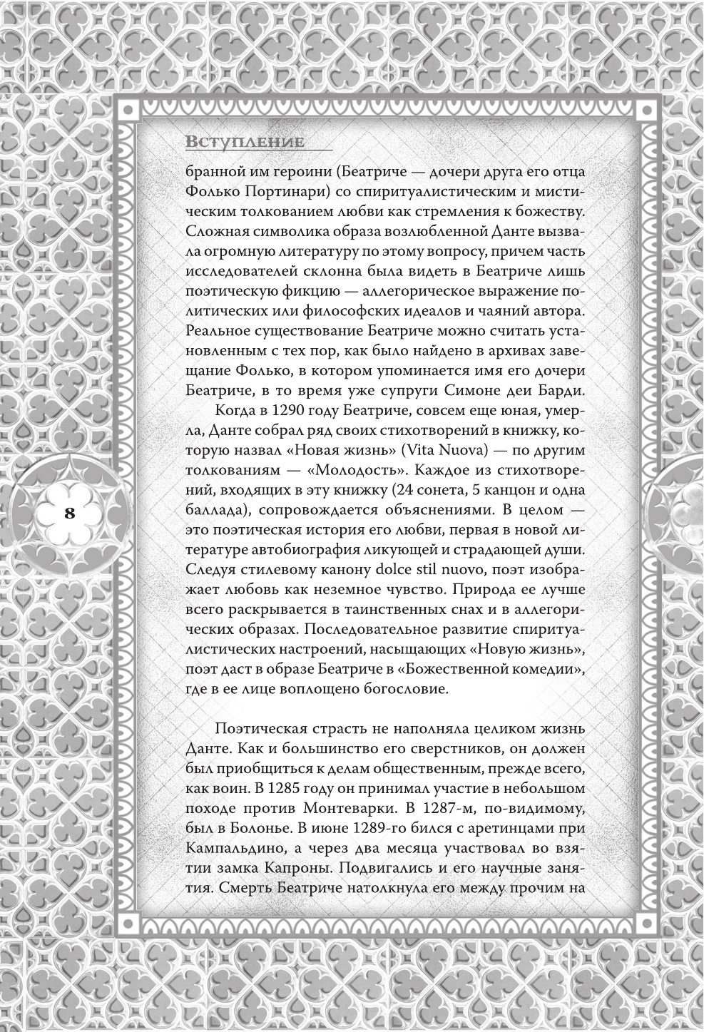В данной книге представлен первый полный русский перевод, выполненный Дмитрием Егоровичем Мином в соответствии со всеми особенностями стихотворного размера подлинника, то есть терцинами. В 1907 году Императорская Академия наук присудила изданию «Божественной комедии» в переводе Мина премию А.С. Пушкина, отметив его как лучший на русском языке.