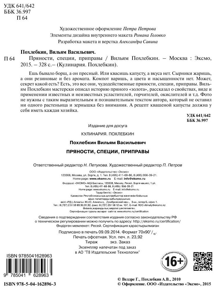 Пряности специи приправы (Вильям Похлебкин); Эксмо, 2022