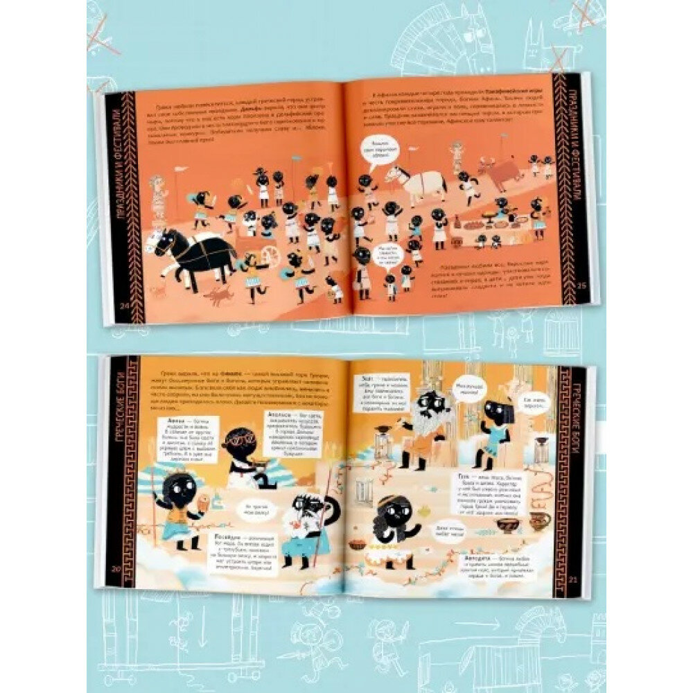 Интересная книжка про греков написанная простым и забавным языком, будет понятна даже самыми маленькими. Несмотря на это факты в книге не детские, некоторые из них не все взрослые знают. Читать интересно, информация легко запоминается в том числе из-за картинок. Картинки смешные, милые и люди на них изображены черными как на древнегреческой росписи. Крутая книга!