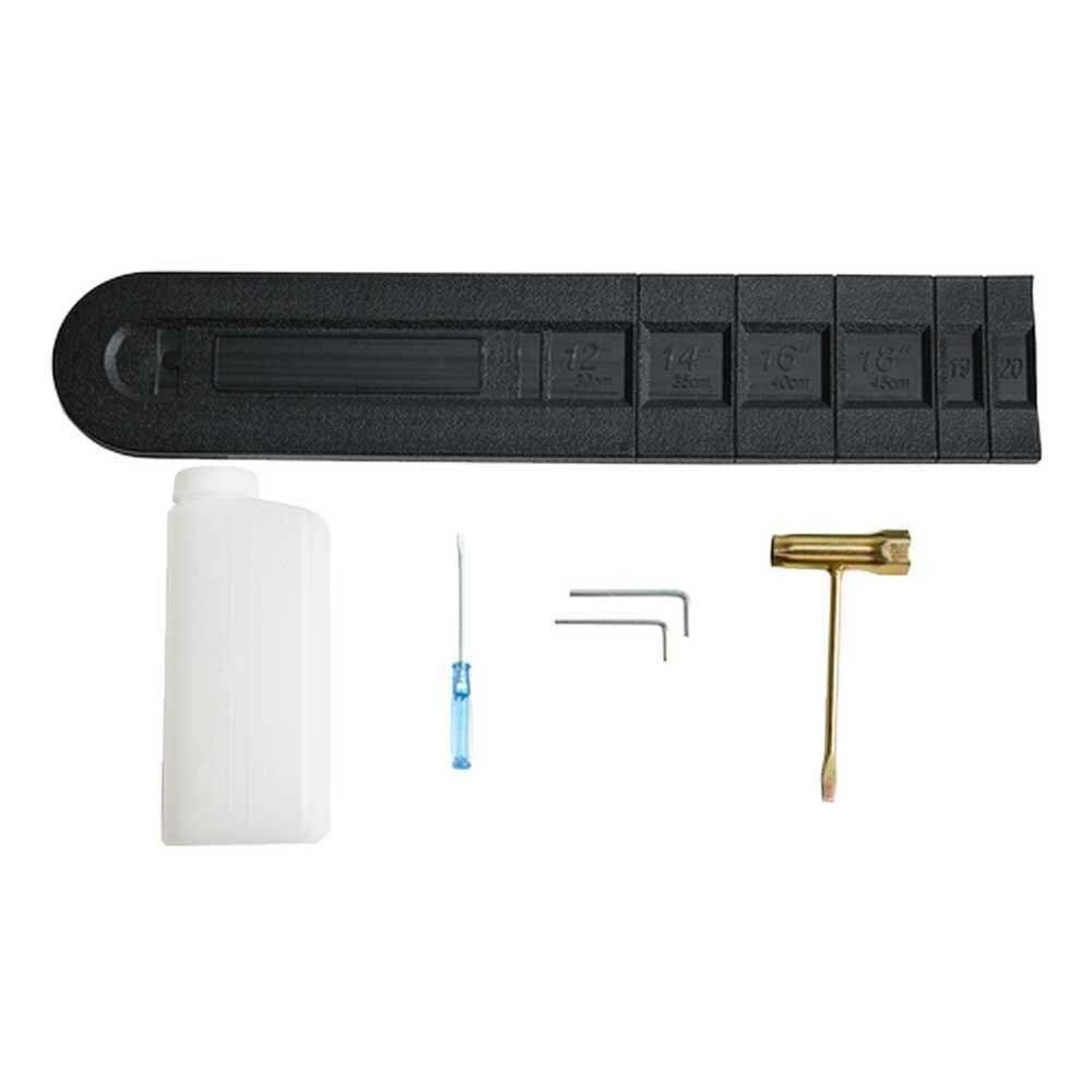 | Комплектация | Бензопила ,Шина ,Цепь ,Защитный кожух шины ,Емкость для смешивания топливной смеси ,Паспорт продукции ,Комплект инструментов и принадлежностей ,Коробка |