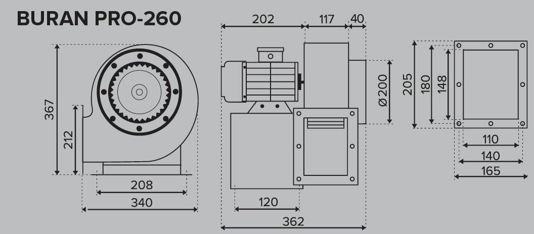 вентилятор радиальный d=200мм фланец 117*212мм buran pro 260 2k t r правосторонний 380в эра Era Pro