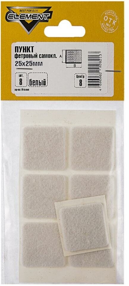 пункт фетр.самокл.25х25 белый 8шт element 248990