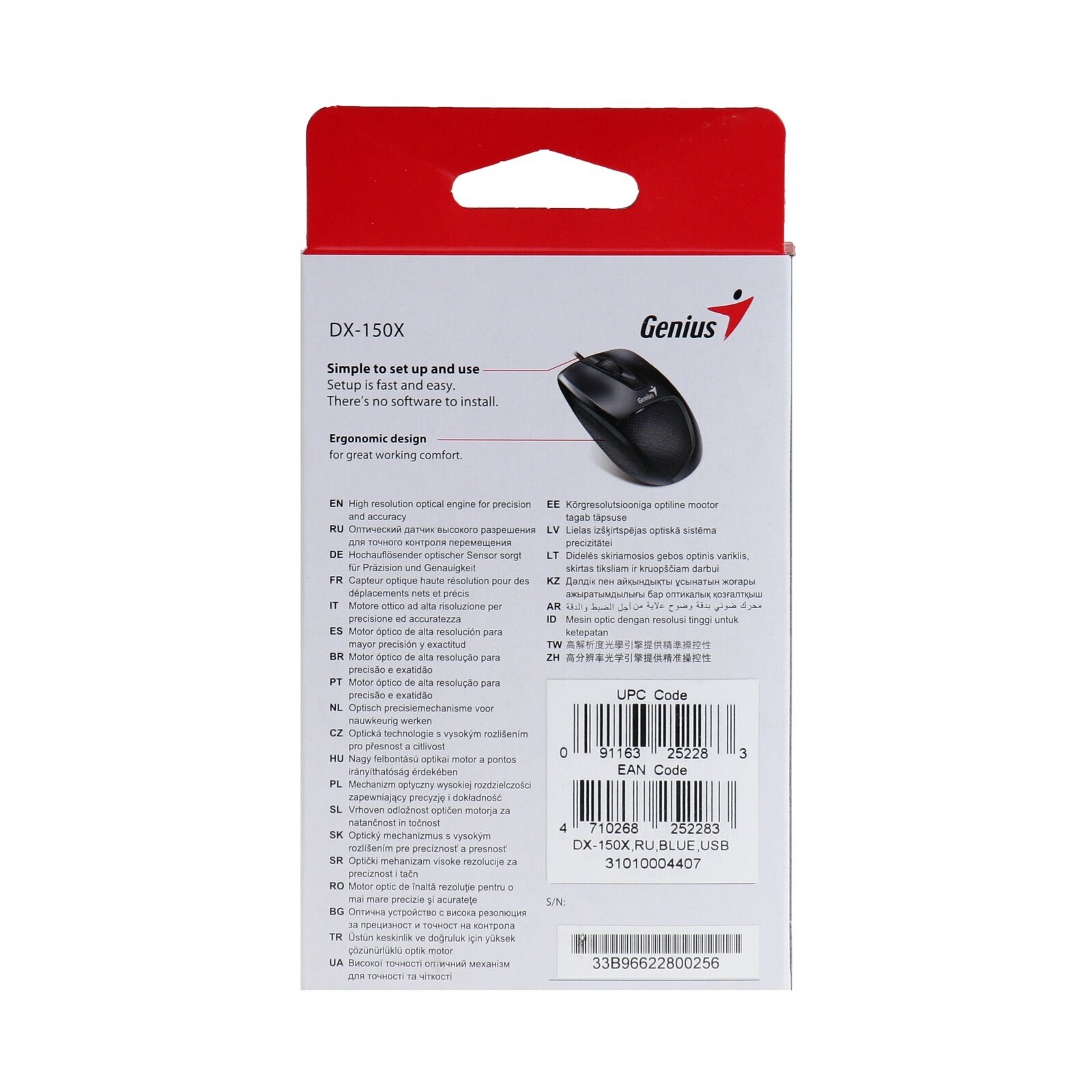 Мышь Genius Mouse DX-150X (31010004407) Blue DX-150X ( Cable, Optical, 1000 DPI, 3bts, USB ) Blue (31010004407)