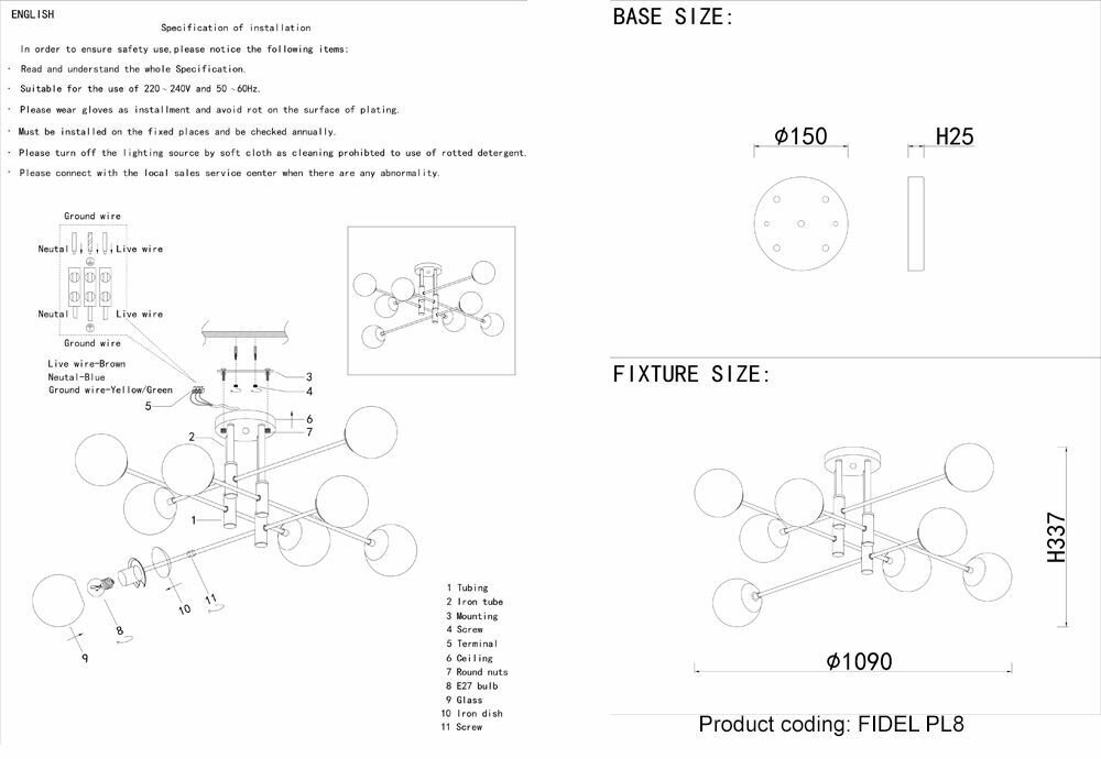 Потолочная люстра FIDEL PL8 BLACK - продукт известной компании Crystal Lux (Испания). Имеет максимальную мощность 480 Вт, освещает площадь до 24 кв. м. Отлично подойдет для таких мест, как гостиная, спальня, кухня, кабинет. Впишется в интерьеры следующих стилей: современный.