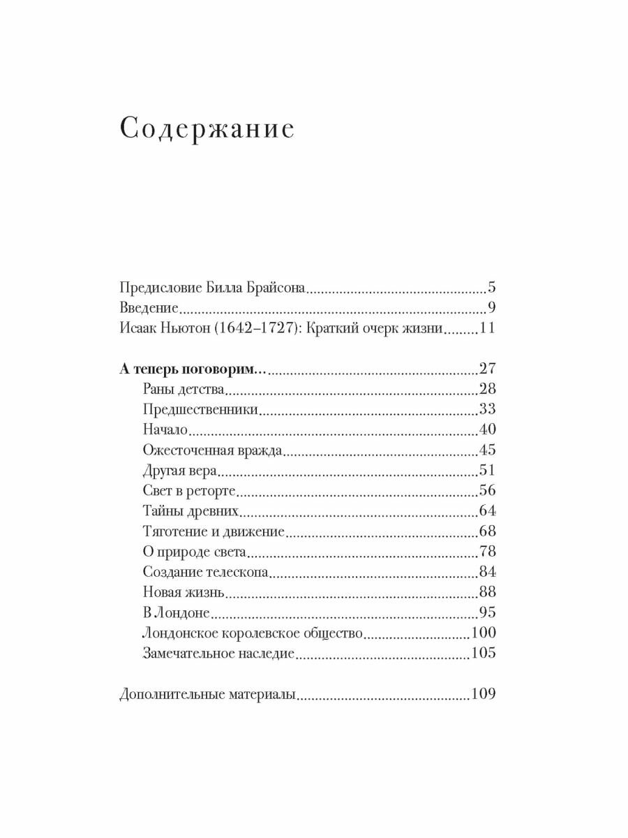 С предисловием популярного американского писателя Билла Брайсона, автора "Краткой истории почти всего на свете" и других бестселлеров. "У Ньютона был нелегкий характер, он был часто неприятен и недружелюбен в общении и поэтому имел очень мало друзей. Он всегда целиком полагался на собственное суждение, и заслужить его уважение было трудно. Вероятно, он неохотно пошел бы на такой разговор, который представлен здесь вашему вниманию, но тем не менее ему все-таки хотелось, чтобы другие люди знали о тех уникальных способностях, которыми он обладал". (Майкл Уайт)
